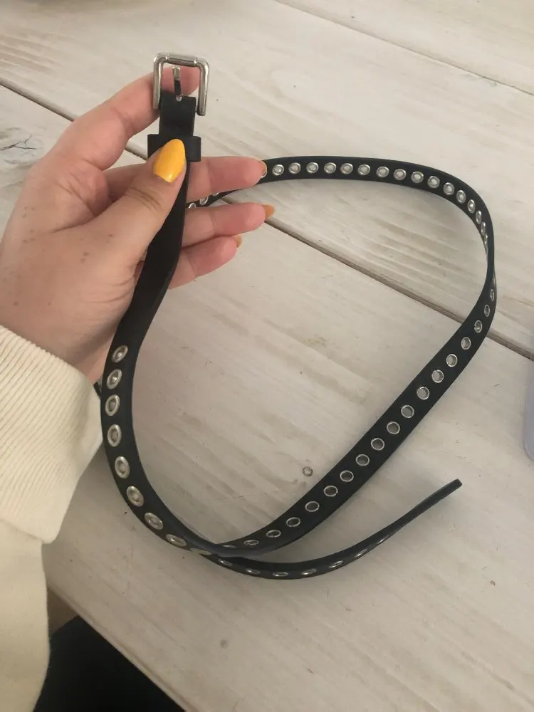 Ремень женский тонкий с люверсами, модный кожаный пояс в стиле хип-хоп, чёрный, белый, коричневый, 2019