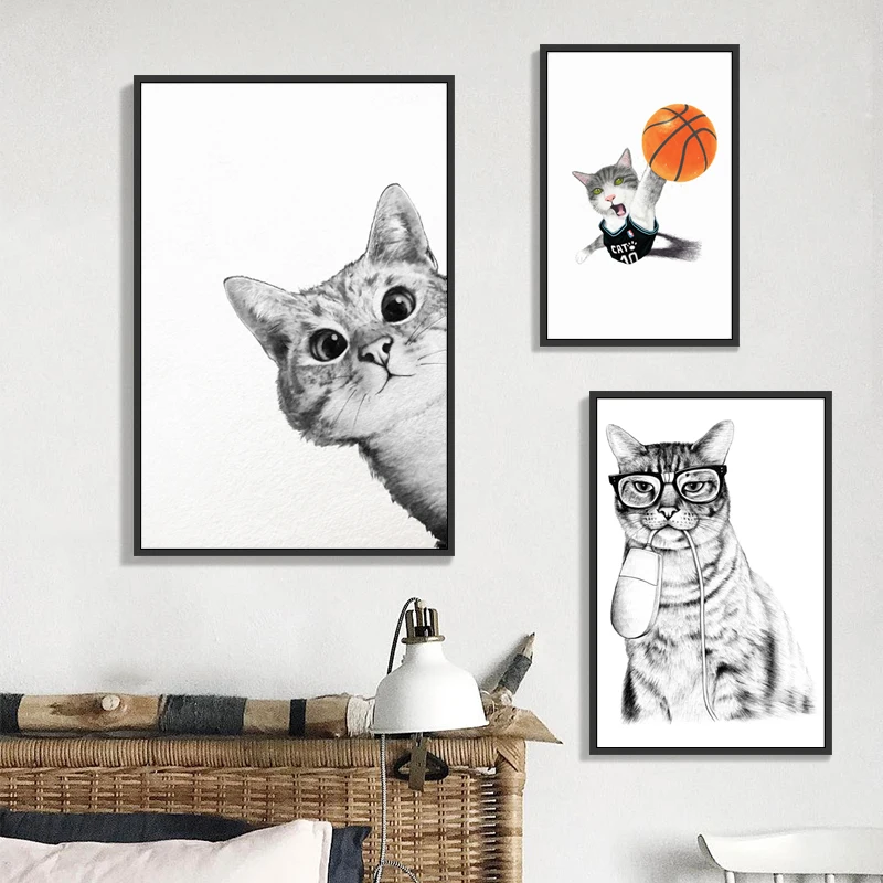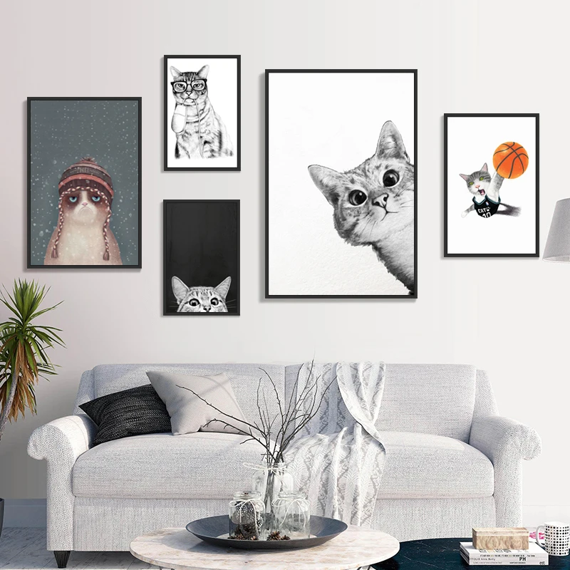 Абстрактный Рисунок милая кошка плакаты и принты настенное искусство холст картины печать Современная Гостиная нордическая декорация для дома