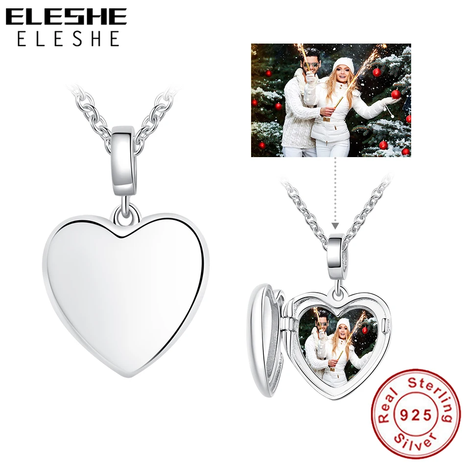 ELESHE персонализированные пользовательские ожерелье с фото 925 стерлингового серебра в форме сердца кулон ожерелья цепи свадебные украшения подарок ко Дню Святого Валентина