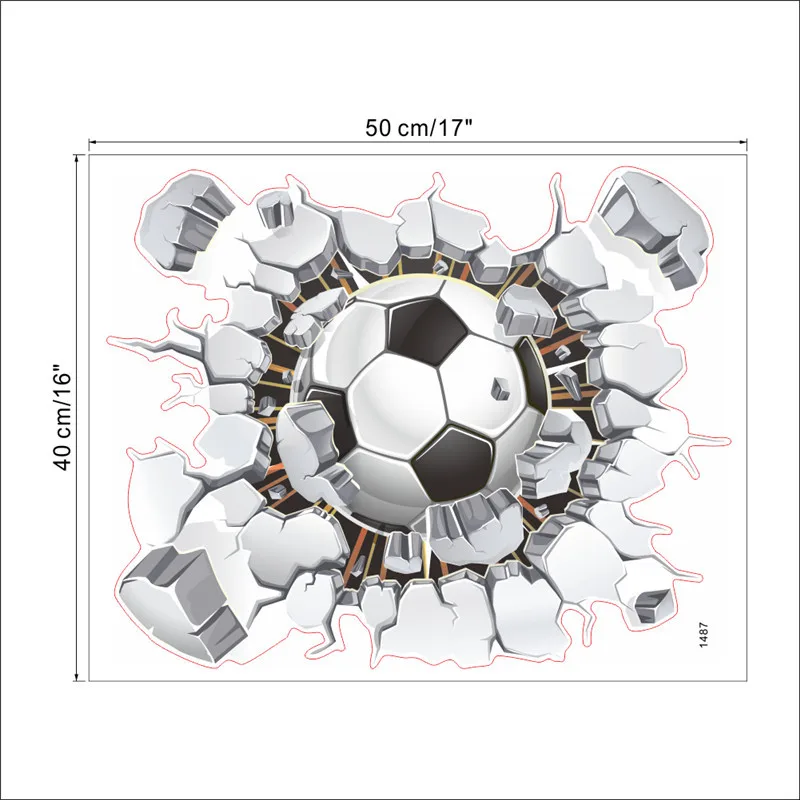 Футбол мяч через стены наклейки ТВ фон Съемные Гостиная спальня настенные наклейки украшение для комнаты мальчиков