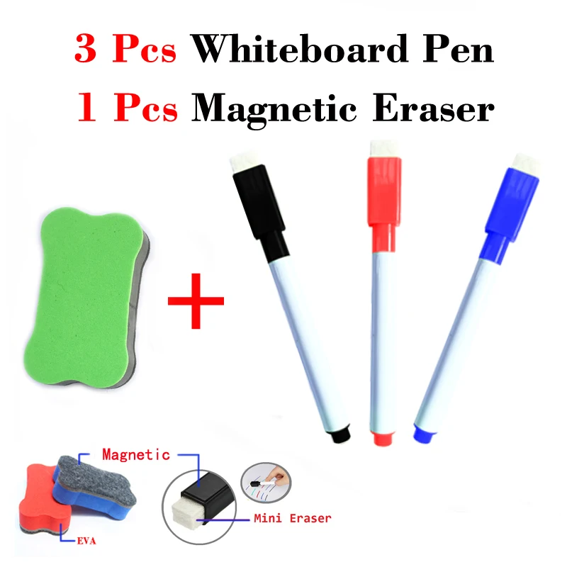 3 шт., маркеры на водной основе для белой доски, 1 шт.