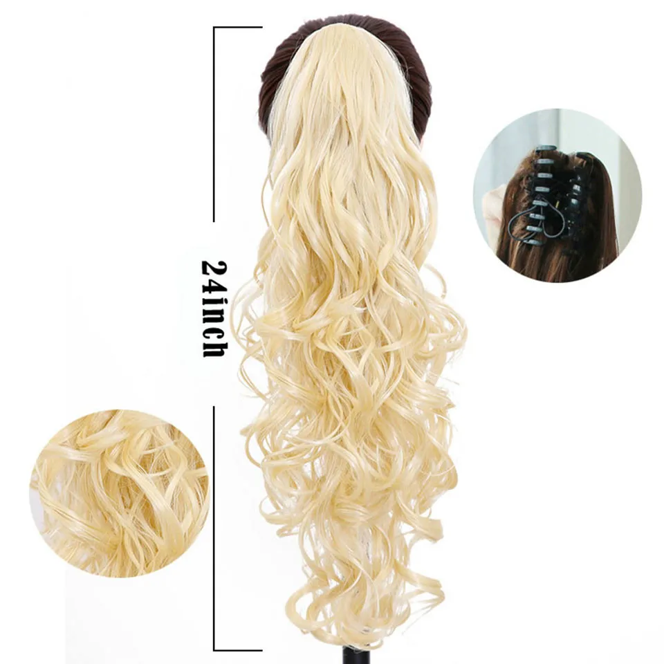 Lupu синтетический длинный хвост наращивание волос когти 24 дюйма для женщин парик волнистые волосы зажим маленькая блондинка девушка термостойкий