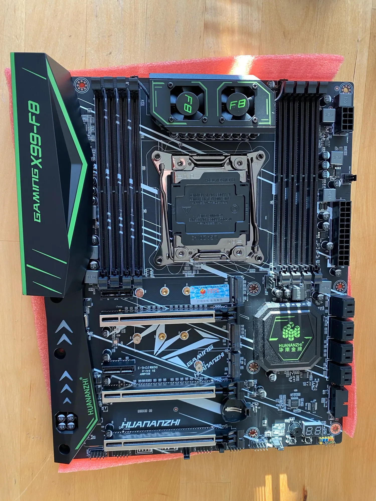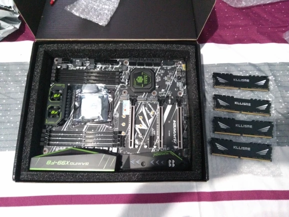 Посылка пришла за две недели, что очень быстро. Упаковано всё хорошо, коробка не помялась. Хорошо, что комплекте с набором идет кронштейн для крепления кулера. Пока попробовал материнку только запустить прикрепив левый кулер, все заводится, память определяется в биосе. Далее не тестил, жду нормальный кулер и нве ссд диск. Про тесты работы с системой отпишусь позже, как всё соберу полностью.