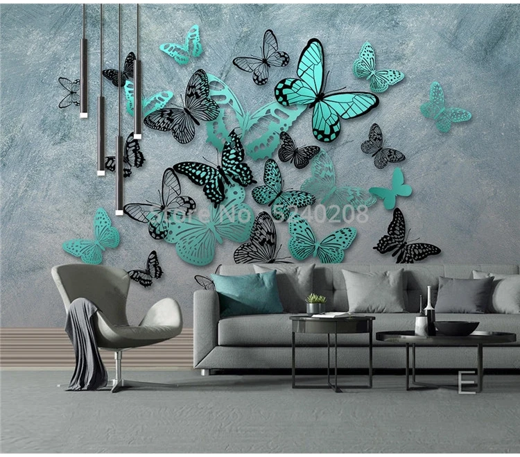 Фотообои на заказ 3D стерео Бабочка синяя цементная настенная Фреска для гостиной ТВ диван домашний декор водонепроницаемые настенные наклейки росписи