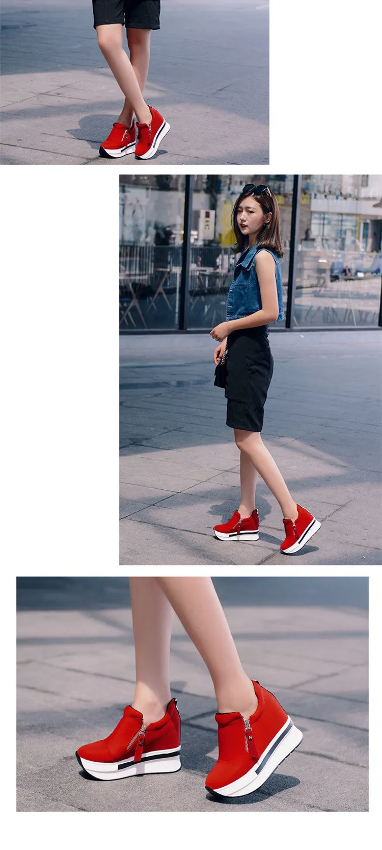 Женская повседневная обувь на танкетке; Кроссовки на молнии, визуал...