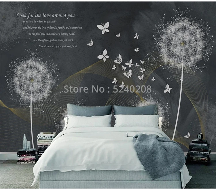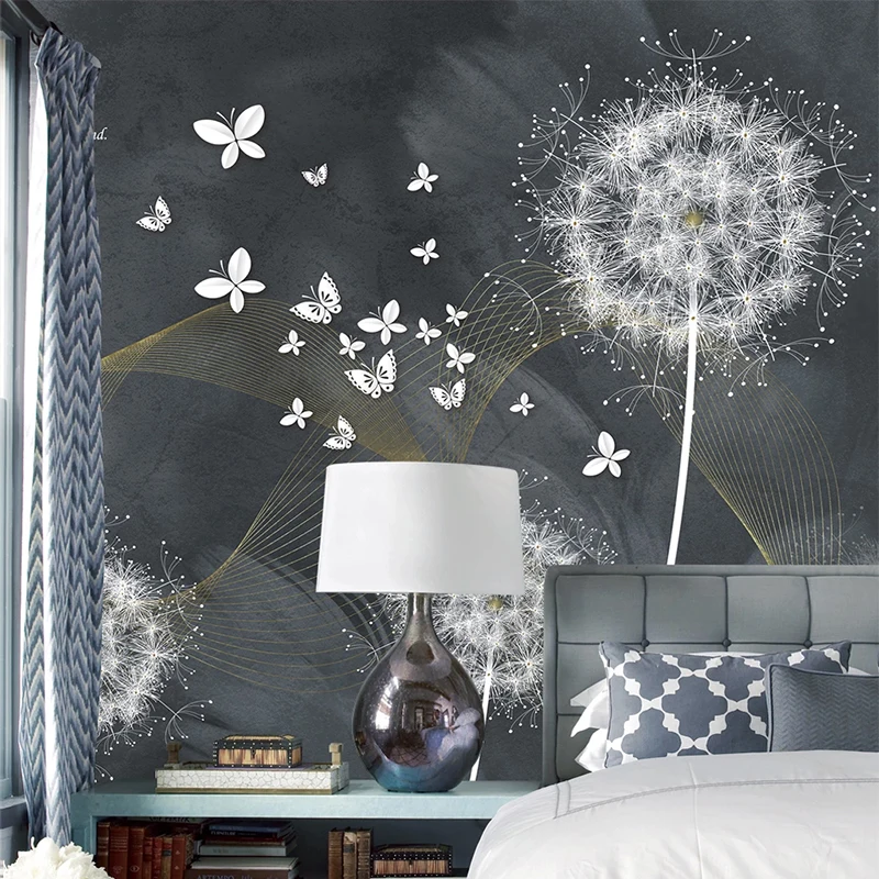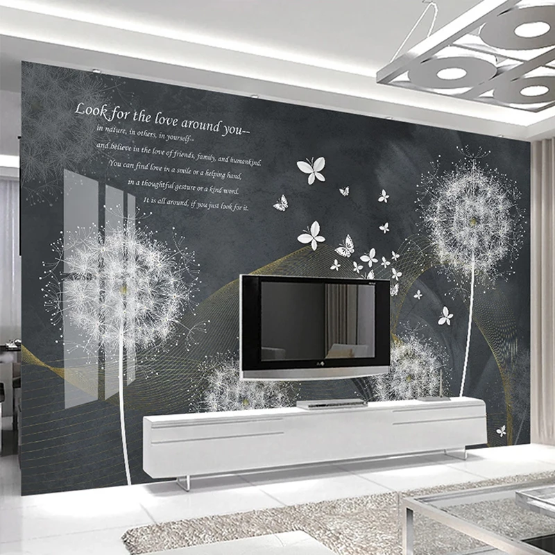 Современные Простые обои с изображением одуванчика и цветов, 3D абстрактные линии, серый фон, настенные фрески для гостиной, ТВ, дивана, домашний декор, 3D наклейки