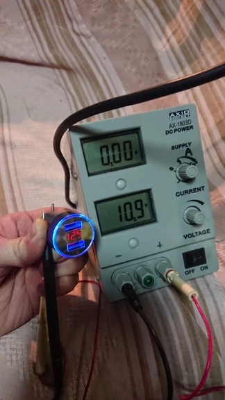 Автомобильное зарядное устройство с двумя USB-портами и вольтметром...