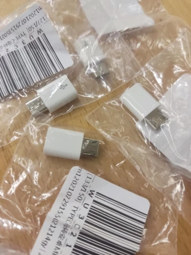 (!)EN - BENEATH(!) UA: Перехідник працює добре. Але перевіряв його лише на заряджання від USB2.0. Цікава річ: при під'єднанні його до павербанку той починає витрачати енергію (вмикається індикатор), з жодним кабелем чи перехідником такого досі не було. Крихітний, m=0,8 г. Зроблений охайно, корпус з пластику. З конекторами з'єднується жорстко. Надіслано в ПЕТ-конверті з пухирчастим шаром. До міста на південному сході України прибуло за 17 днів (Укрпошта, було SMS про надходження). Другу половину шляху чомусь відстежувалося погано. =EN: Adapter works fine. But tested it only for charging from USB 2.0 socket. Interesting that connecting it to powerbank the latter starts to spend energy (its indicator lights up), never seen it before with any other cable or adapter. Tiny, m=0.8g. Made neat, body of plastic. Connectors fix well in it. Mailed in PET pack with bubble-wrap layer. To the city in Southeast Ukraine arrived in 17 days. Wondering why last half of travel was traced poorly.