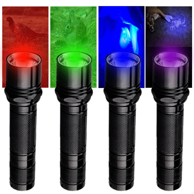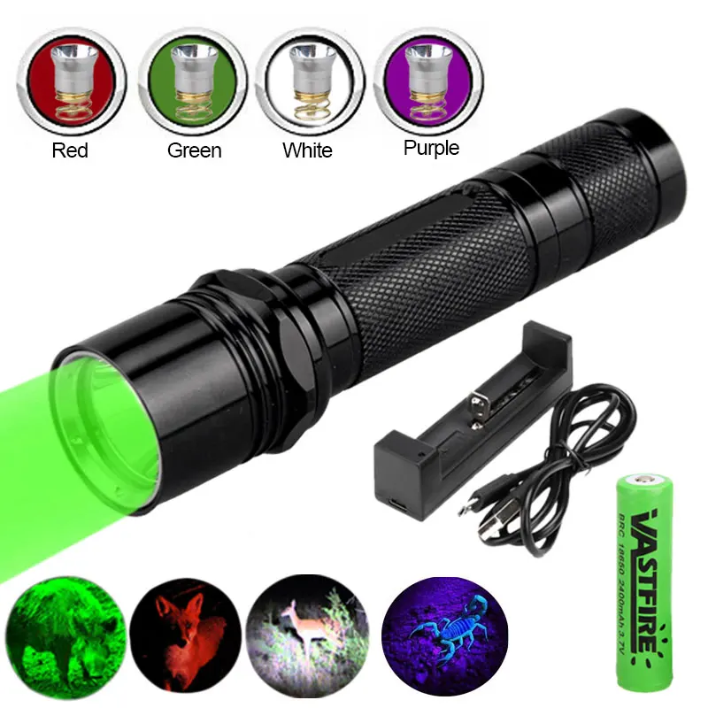 Тактический охотничий флэш-светильник, 1 режим, фонарь из алюминия, 6 P, водонепроницаемая лампа для скаута + сменный светильник RGB с головкой + 18650 + зарядное устройство USB