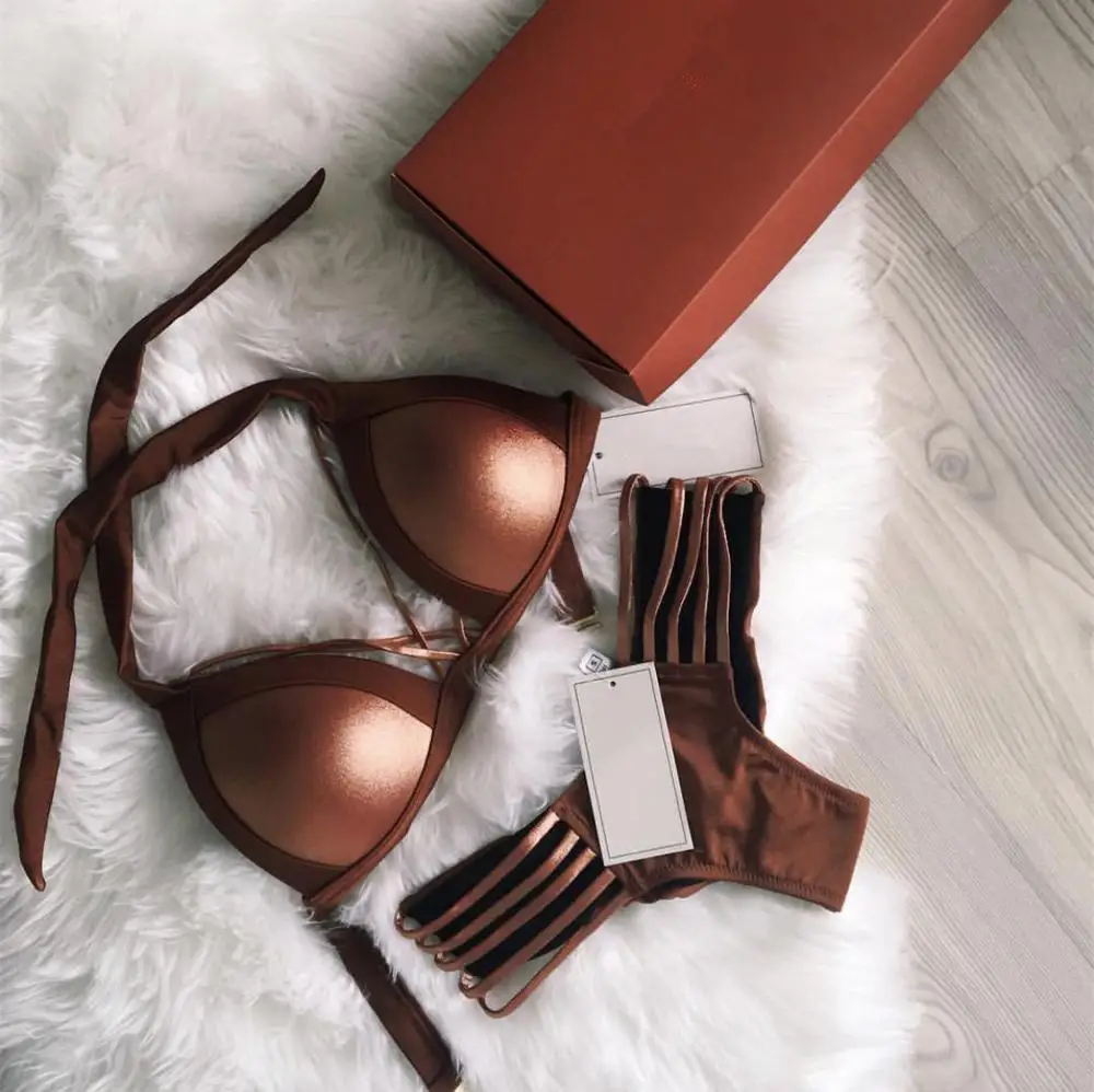 2019 сексуальный купальник с вырезами, купальный костюм с открытой спиной, женский купальник-стринги, купальник с лямкой на шее, комплект бикини с полосками, купальник с пуш-ап, бикини
