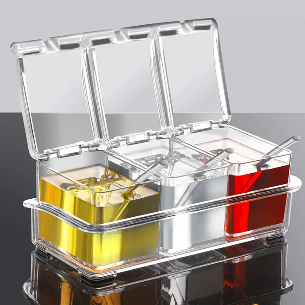 3/4 сетка акриловая прозрачная коробка для приправ соль и перец кухонные специи контейнерная приправа хранение с ложкой