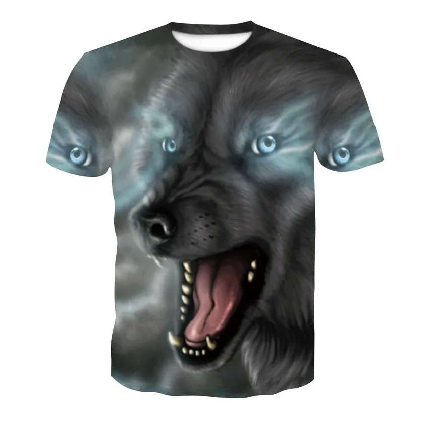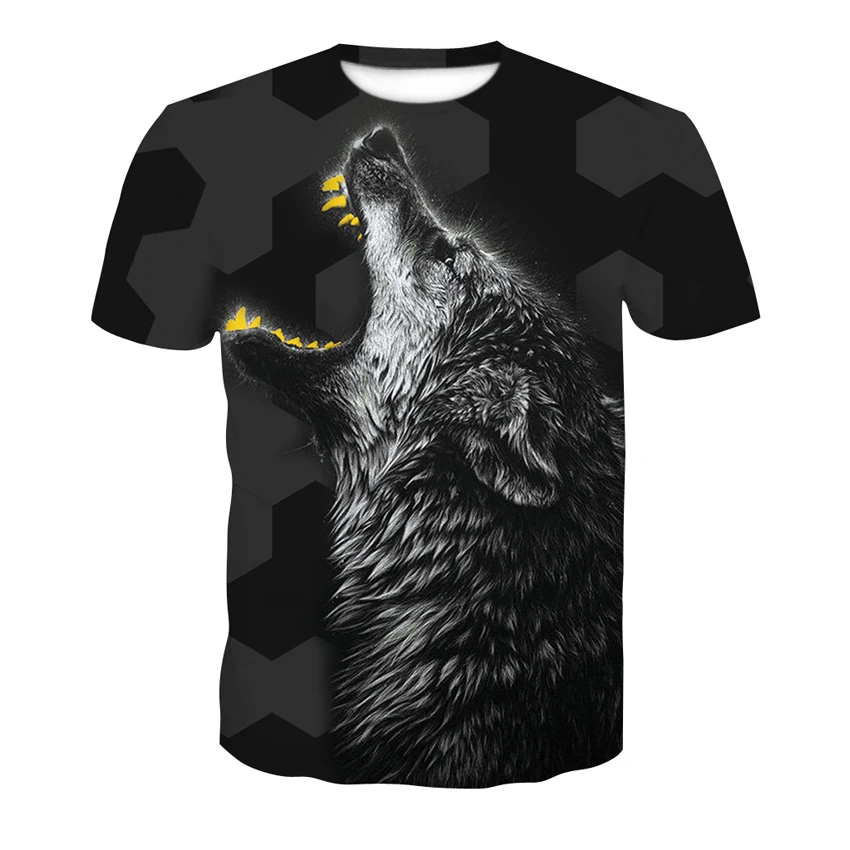 TUNSECHY мужская футболка Летняя модная футболка с 3D принтом волка Повседневная Спортивная футболка с круглым вырезом и коротким рукавом