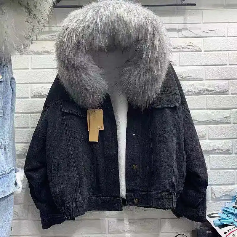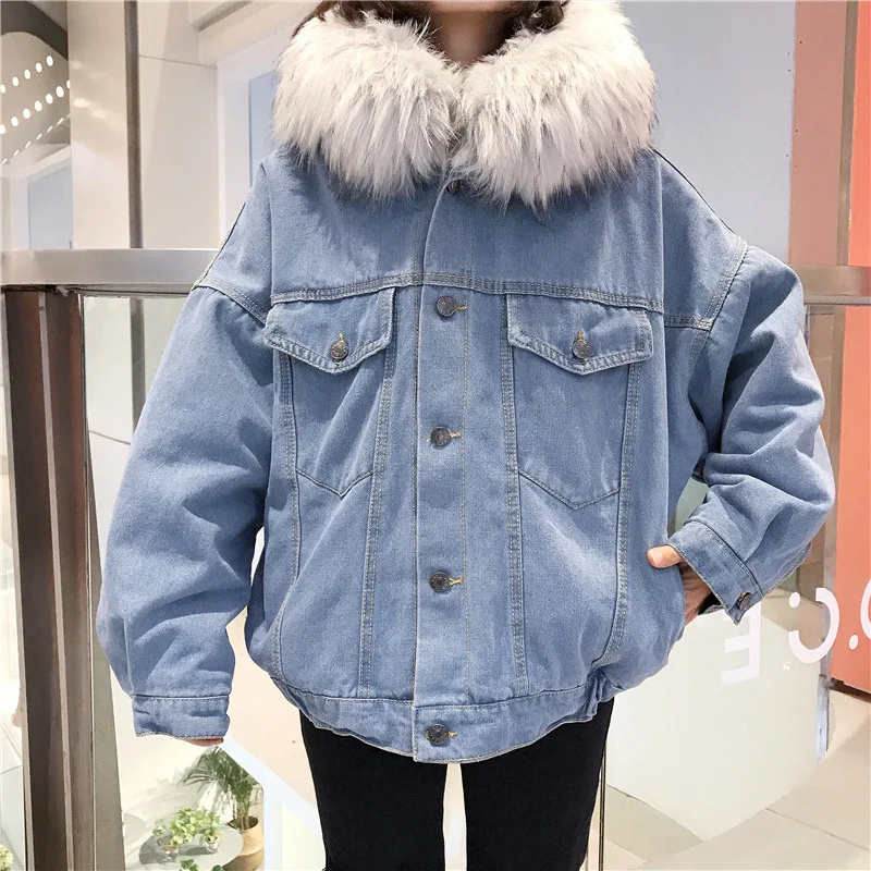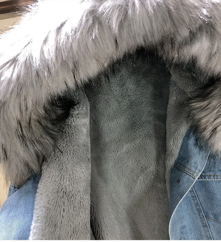 Куртка Luzuzi женская из денима, длинная теплая верхняя одежда из денима с хлопковой подкладкой, с меховой отделкой капюшона, свободная верхняя одежда, зима размера плюс