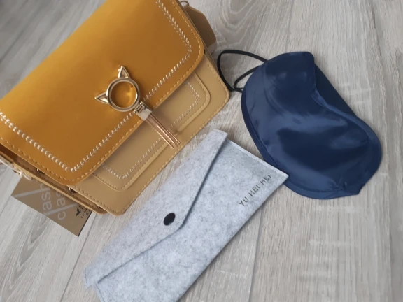 Самое качественное из этой сумки - это ремешок, остальное пойдёт. Запах очень сильный, имеются заломы. Фурнитура терпимо. Но за такую цену хорошо. Размер кстати небольшой. А ну и в подарок,фетровая штука и маска для сна зачем-то, но спасибо)