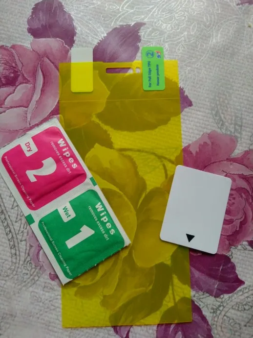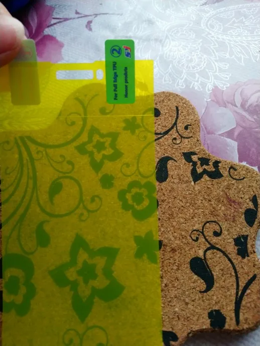 Обычная пленка (просто чуть плотнее). В наблре была сама пленка (для смартфонов honor, что забавно), две необходимые салфетки и пластиковая прямоугольная штучка для ровного наклеивания (вот только из-за своих маленьких размеров оказалась не особно пригодной, проще платком или линейкой выравнивать). До этого ни разу не приходилось клеить подобное,поэтому, когда криво-косо наляпал на экран, думал что всё, телефон будет теперь с пленочной защитой, но уродцем, так как осталось очень много пузырей и горизонтальных полос.