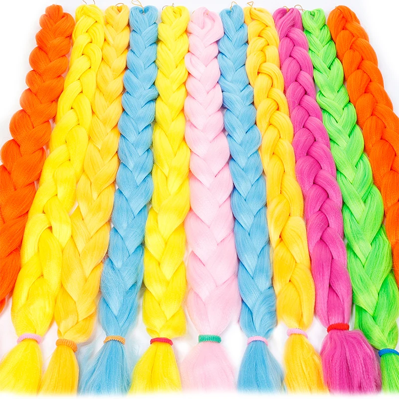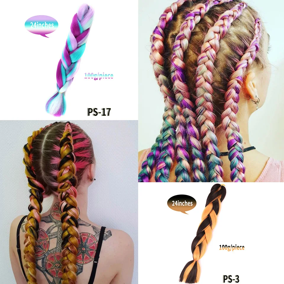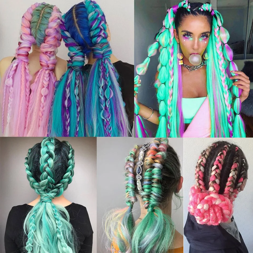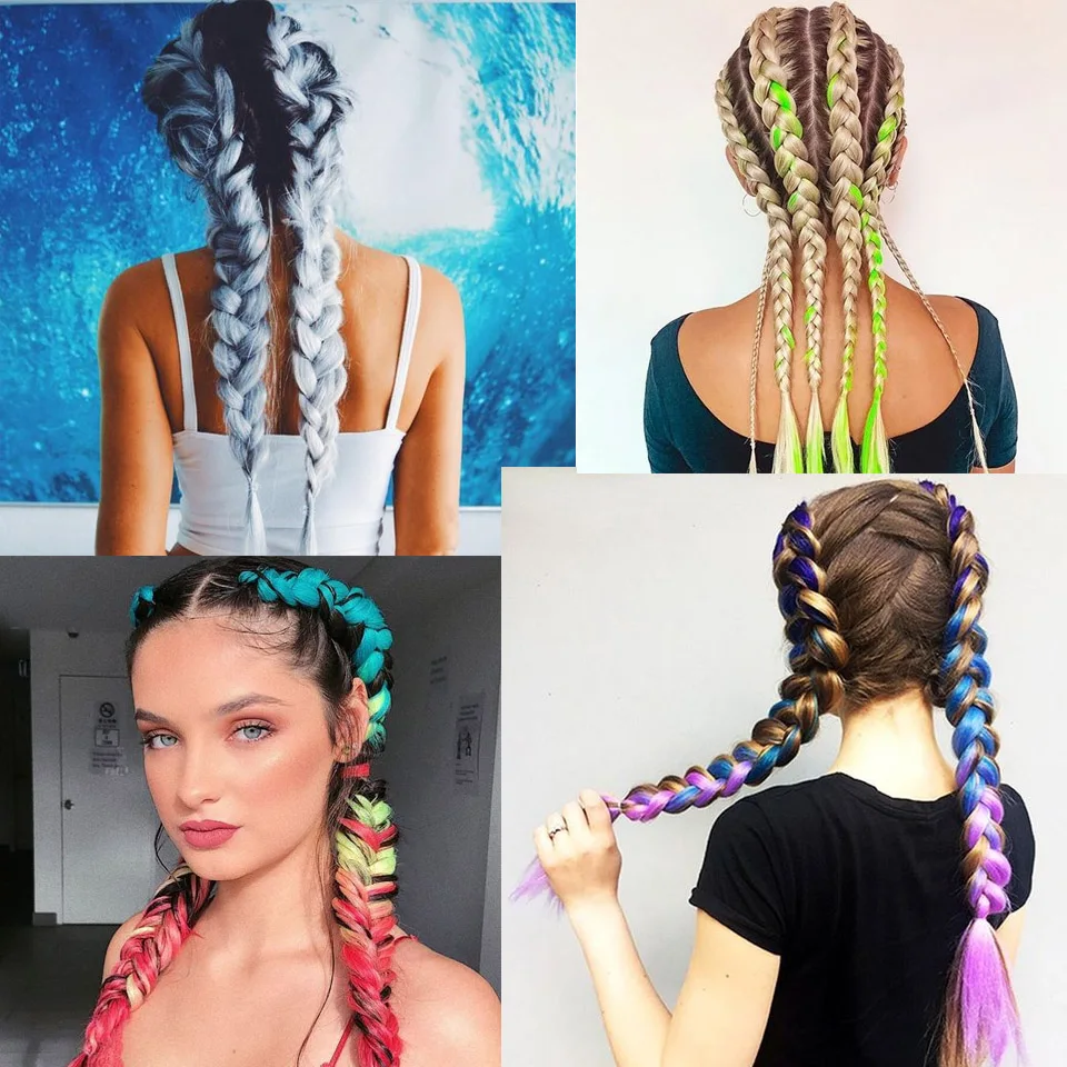 Женские удлинители волос AILIADE, крупные косички для косичек, синтетические высокотемпературные волосы для плетения, 24 дюйма, двухцветные, розовые, синие, для женщин
