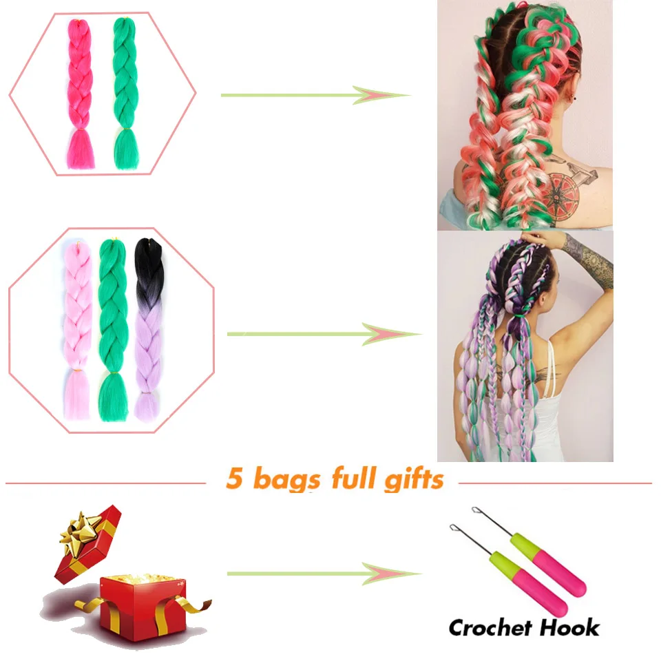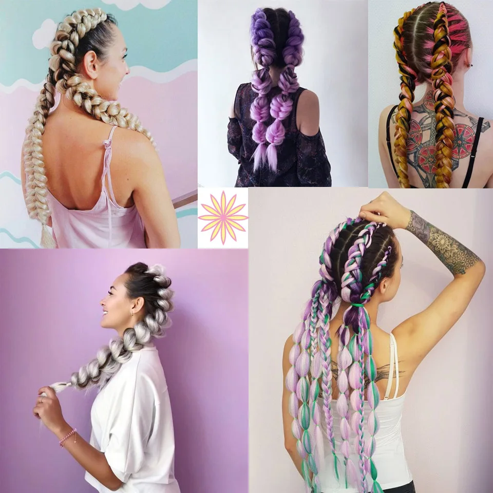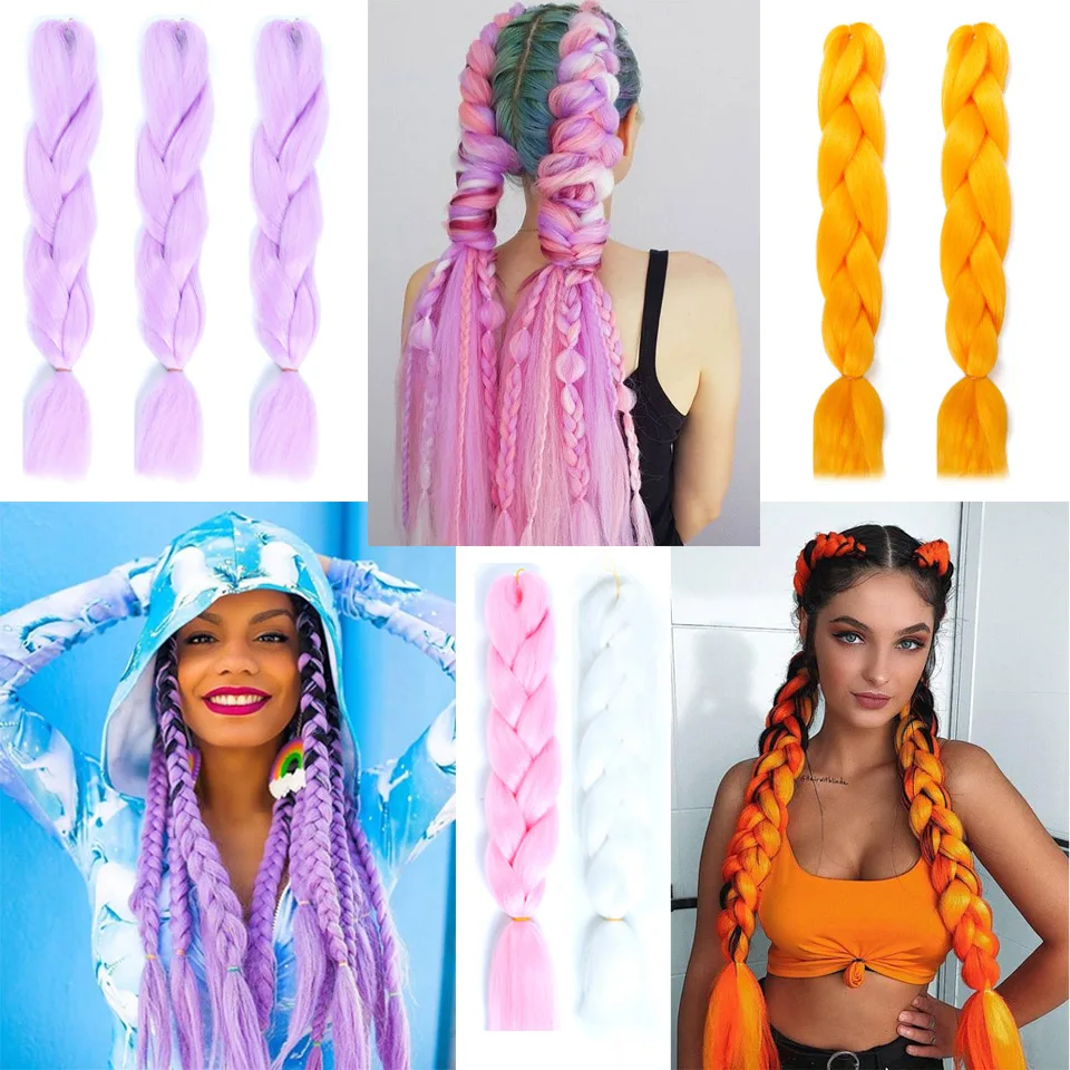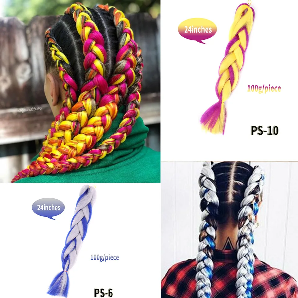 Женские удлинители волос AILIADE, крупные косички для косичек, синтетические высокотемпературные волосы для плетения, 24 дюйма, двухцветные, розовые, синие, для женщин