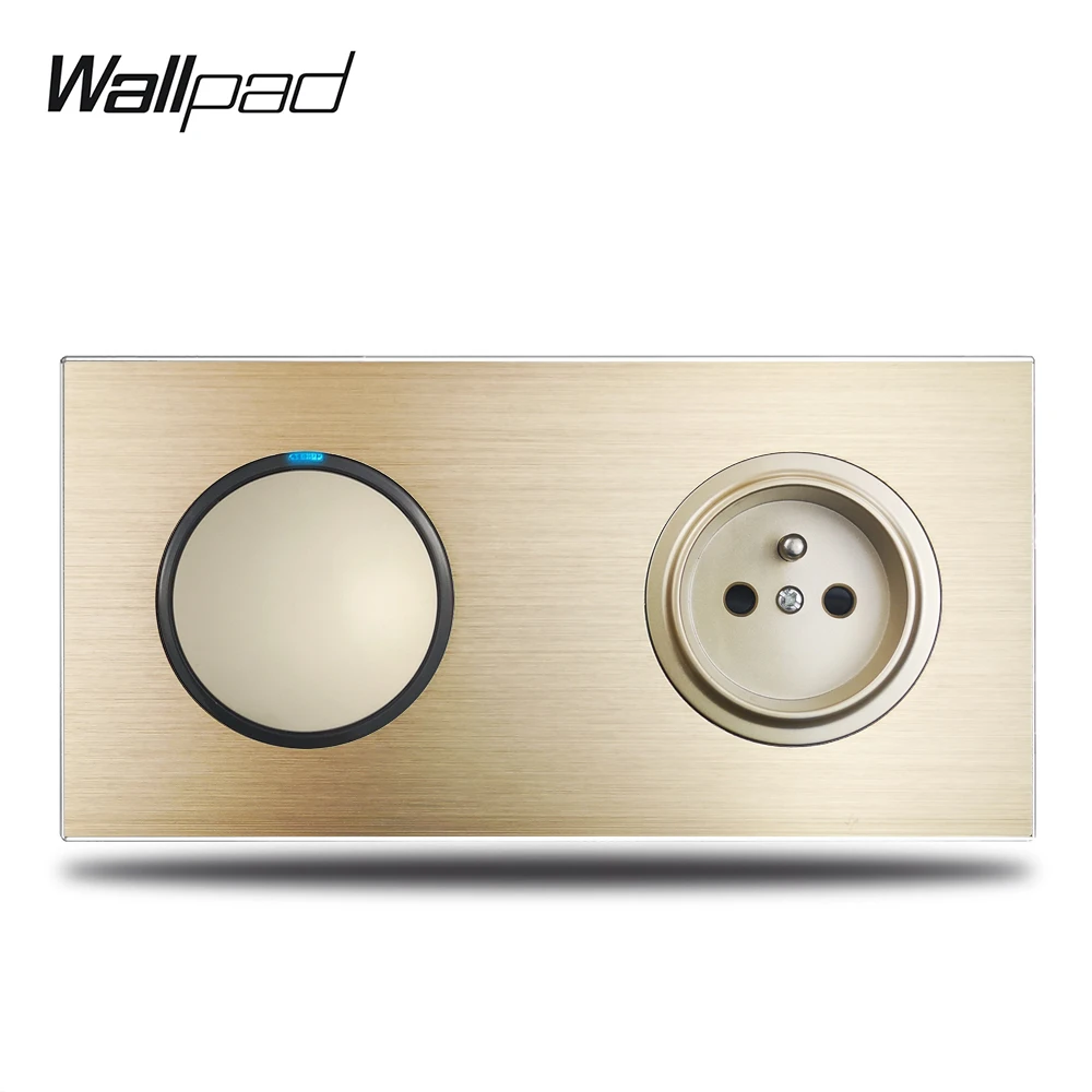 Wallpad L6 золотой 1 бандажный светильник, синий светодиодный индикатор, Французская электрическая розетка, Золотая матовая алюминиевая металлическая панель