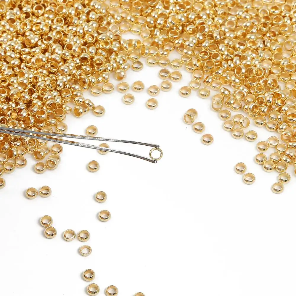 500 шт.лот, золотые Родиевые шарики, Обжимные бусины, 2, 2,5, 3 мм,...