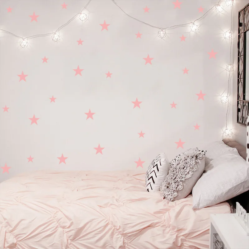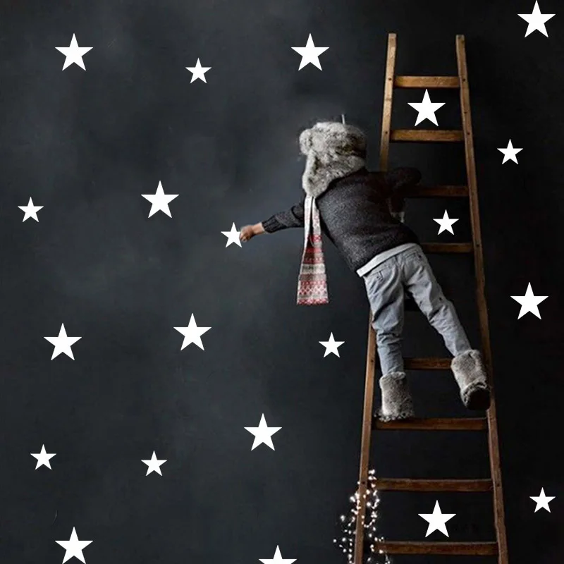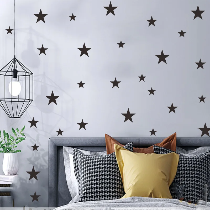 Одноцветные черно-белые серебряные звёздные настенные Стикеры для украшения дома ПВХ съемные настенные наклейки