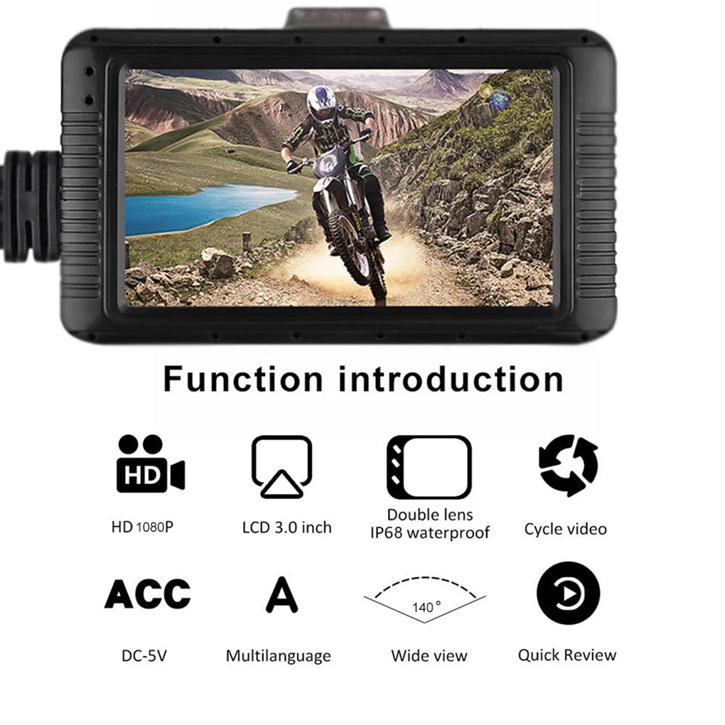 Видеорегистратор с ЖК-дисплеем 3,0 дюйма, Full HD 1080P, для мотоциклов