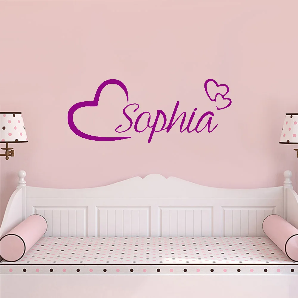 Наклейка на стену сделай сам в виде сердца, персонализированное имя для девочек и мальчиков, художественный декор, виниловая внутренняя отделка для детской комнаты, индивидуальная наклейка, милое украшение Y453