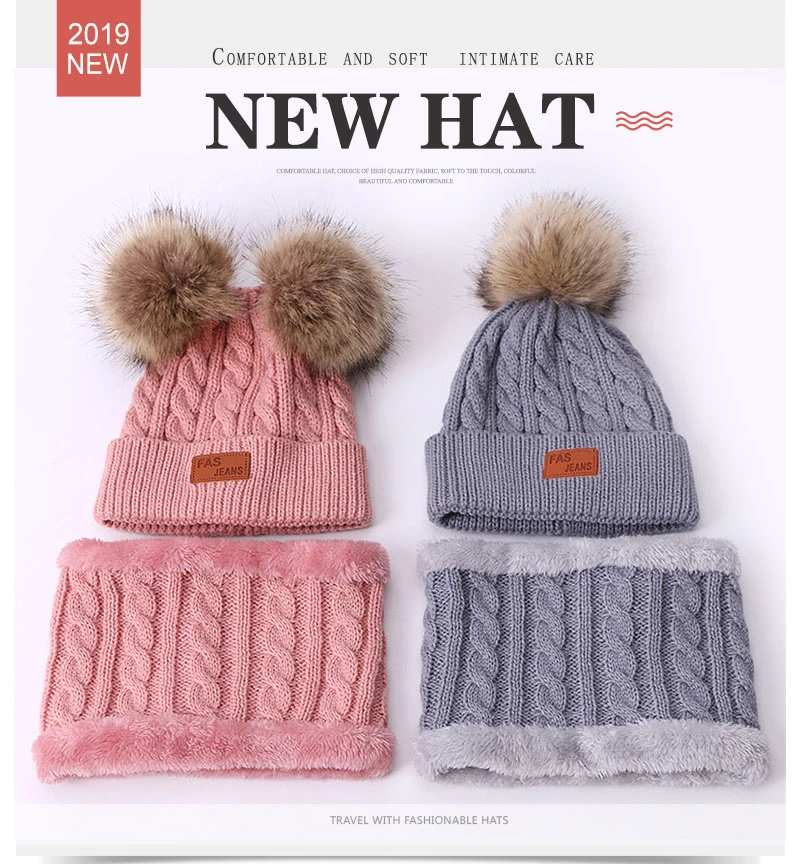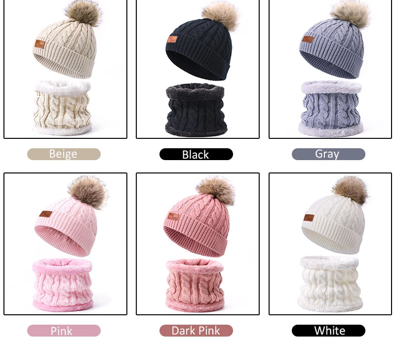 Набор из шарфа и шапки, Детские шапочки, шапочки, шапочки с помпоном, искусственный шар для вязания, осень и зима, теплые однотонные белые уличные шапочки для девочек