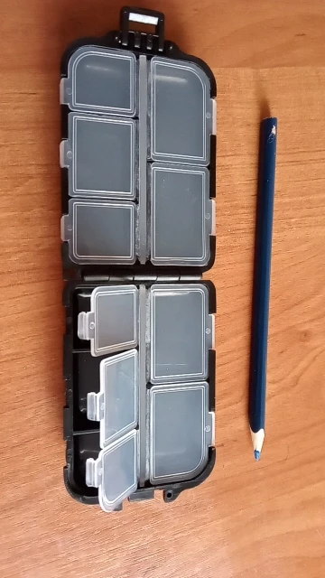 неожиданно очень маленький размер. для крючков и грузил на поплавочку самое то.
