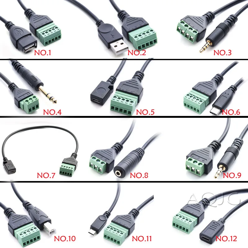 Кабель-Переходник USB 2,0 (гнездо) B Micro usb (штекер) Type-C (штекер) на 5-контактный болт с винтовым разъемом