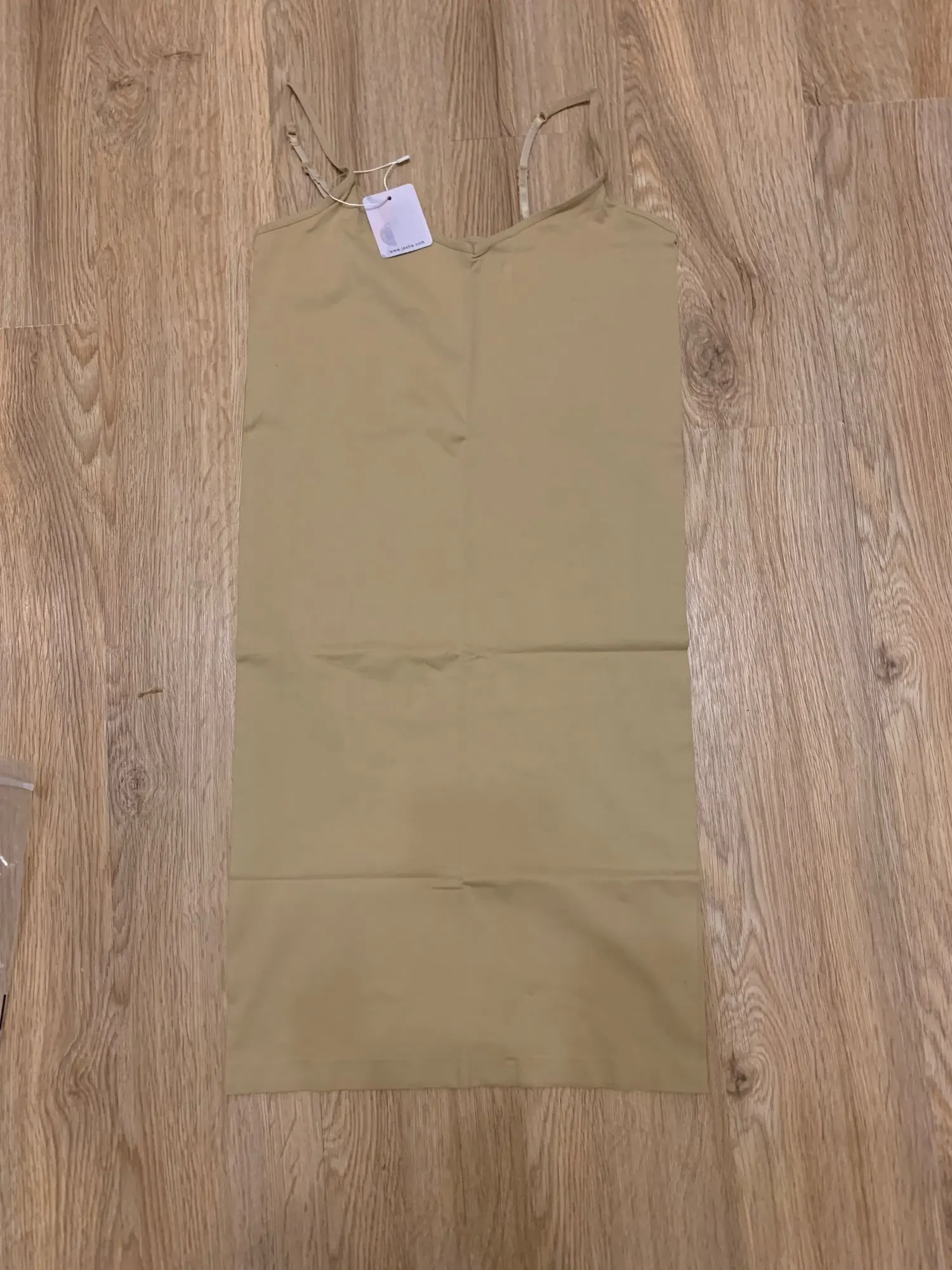 Классная вещица. Брала в качестве комбинации под кружевное платье. Сшито очень аккуратно. Бретели для меня тонковаты, но сразило то, что мою грудь пятого размера держит без бюстгальтера! Лёгкая утяжка. Цвет чуть темнее телесного. Длина на ладонь выше колена. Качество ткани как очень плотные колготки. К телу приятна. В качестве комбинации однозначно к покупке рекомендую.