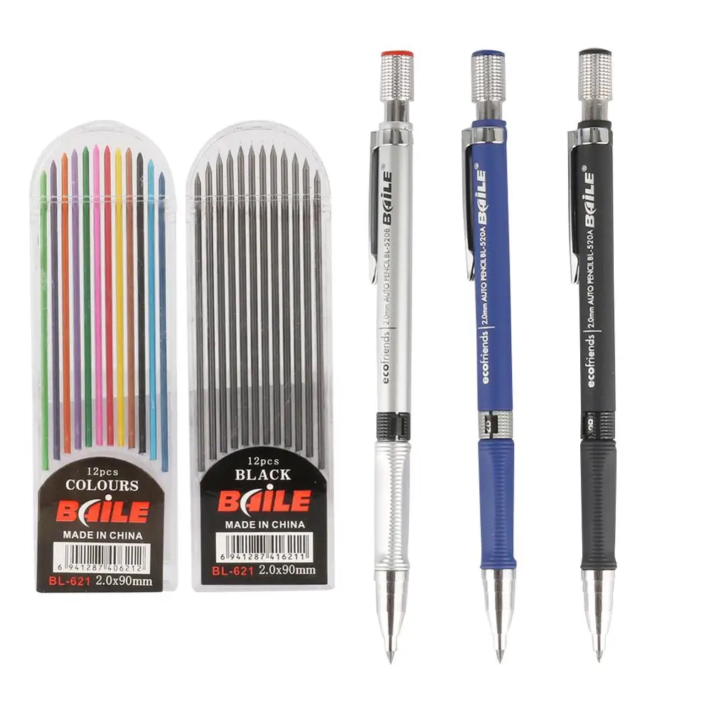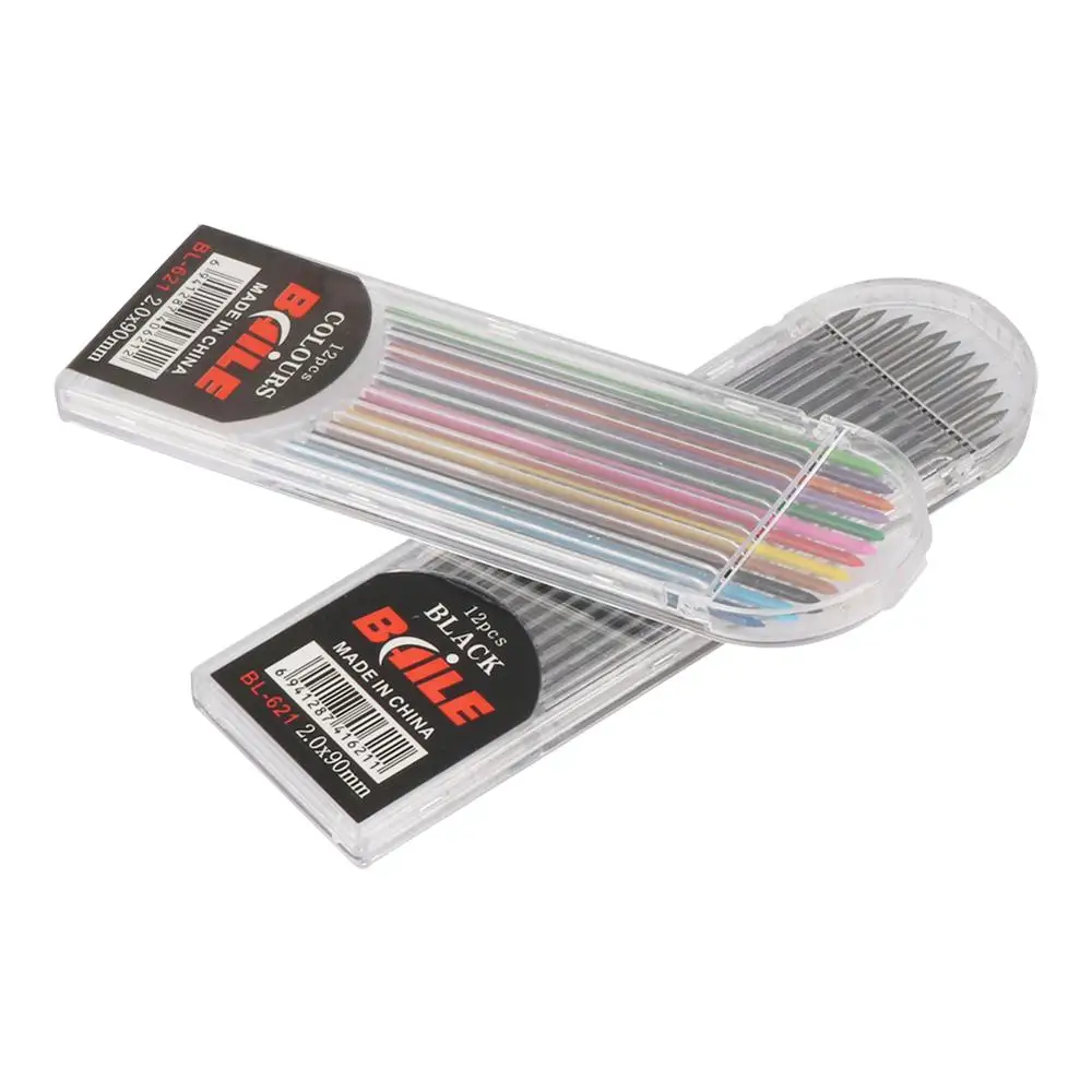 Карандаш автоматический 2,0 мм 2B для рисования, карандаш для письма, 12 шт., черныеЦветные стержни, канцелярские принадлежности