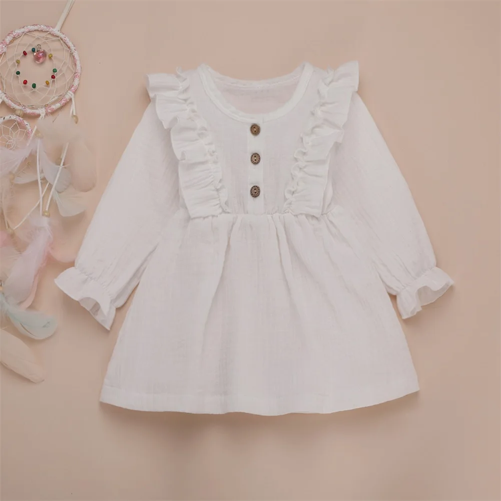 Платье для девочек Ma Baby, осенне-весеннее однотонное платье-пачка с длинными рукавами и оборками, От 1 до 6 лет