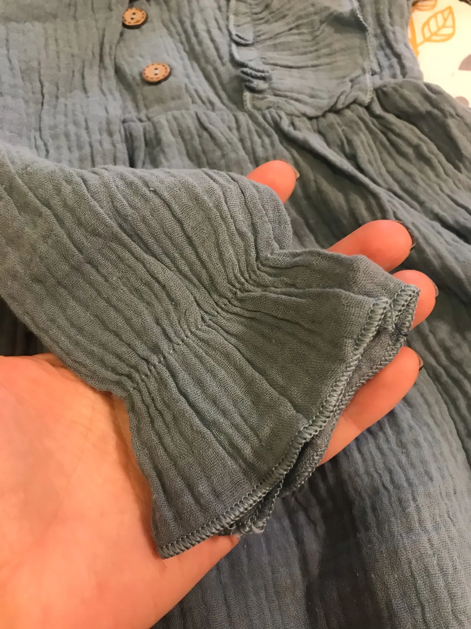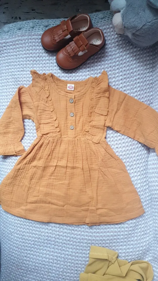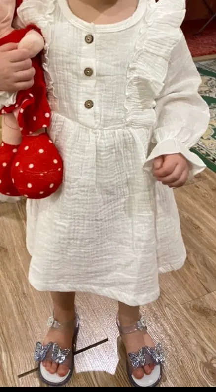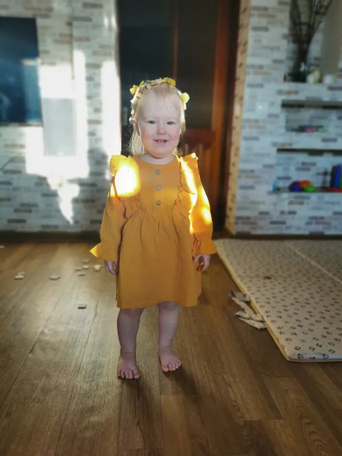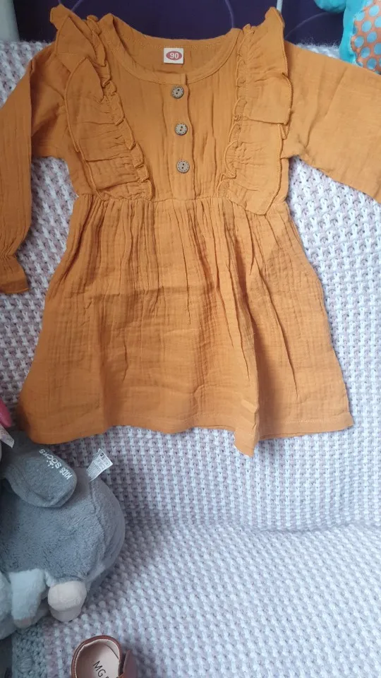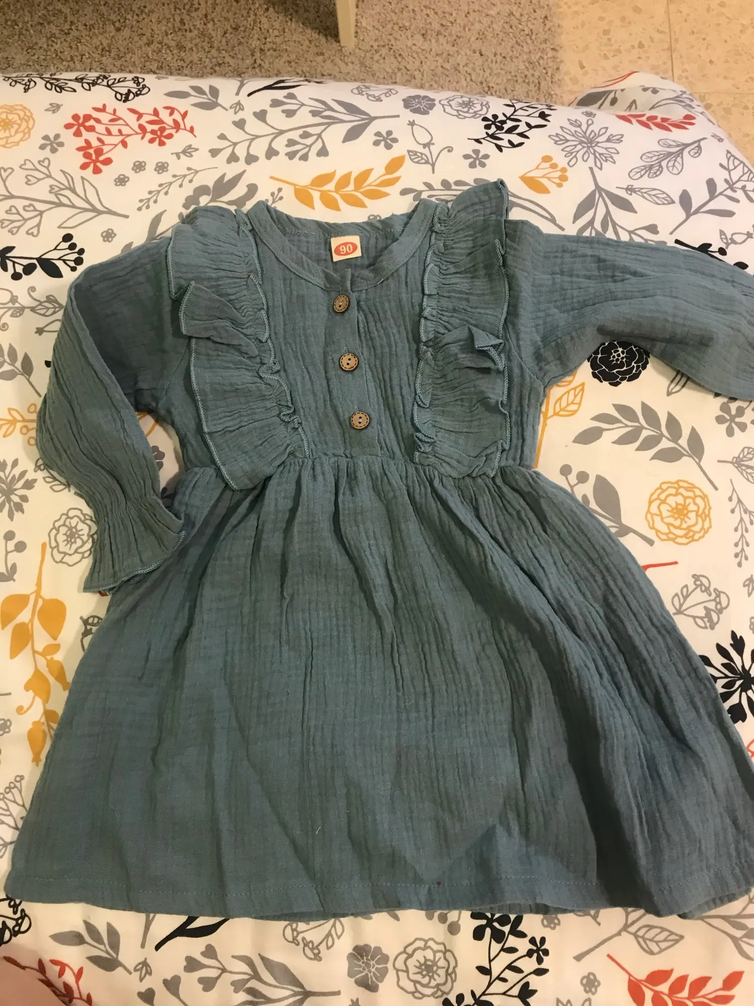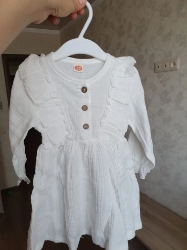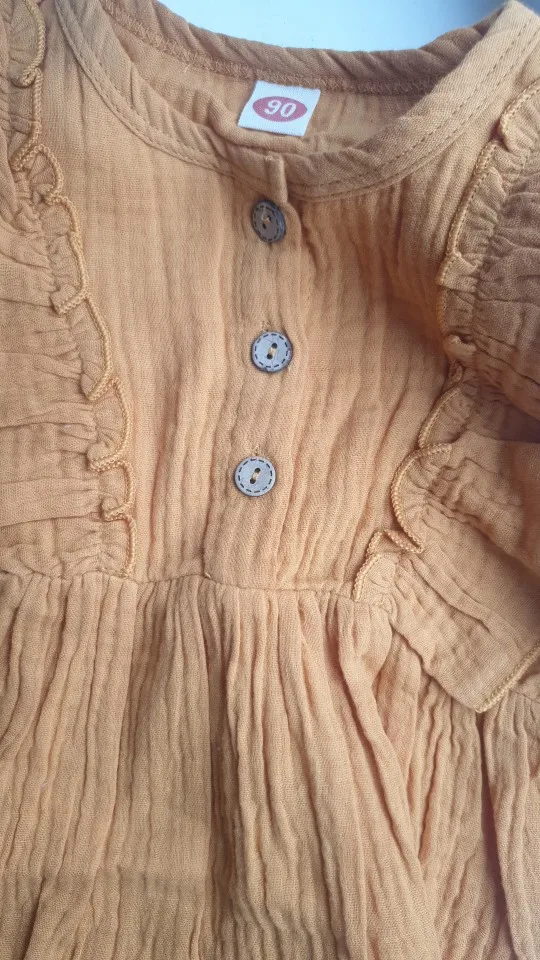 Платья очень понравились, цвет и внешний вид соответствуют описанию. Размер все-таки маломерит: на девочку с европейским размером 80 "1-2Y" маловат, налез, но тесен. следующий отлично подходит. Разница между ними буквально пара сантиметров. Нитки местами торчат, но мне все равно очень понравились платья.
