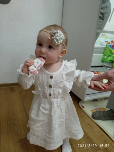 Платье отличное. Но нам прям впритык. Ошиблась с размером. Взяла где было написано 1-2 года, а нам 1г и 7 мес. Маловато. Мы уже между 80 и 86 размером. Похоже нужно на 2-3 брать. Пишу для таких же как я. Если только доросли до 80 размера то самое то. А если вырастаете то мало будет. Не ну мы оденем пару раз ну и все