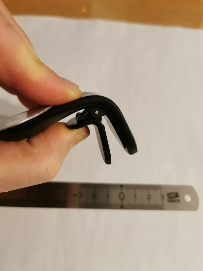 Товар пришёл целый, как в описании. Прищепка сама держится норм. Магнит слабоват - если пластину спрятать за чехол, то сползает. Видимо магниты маленькие очень. Доставка хромыми собаками составила больше трех месяцев...