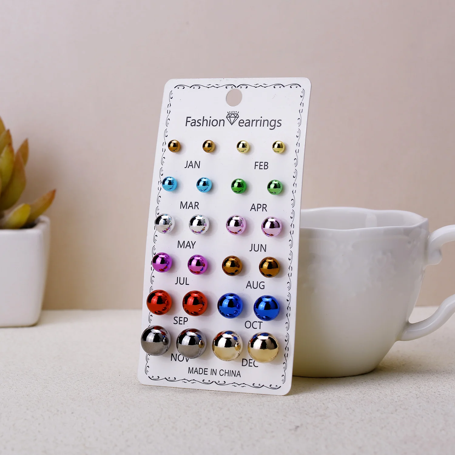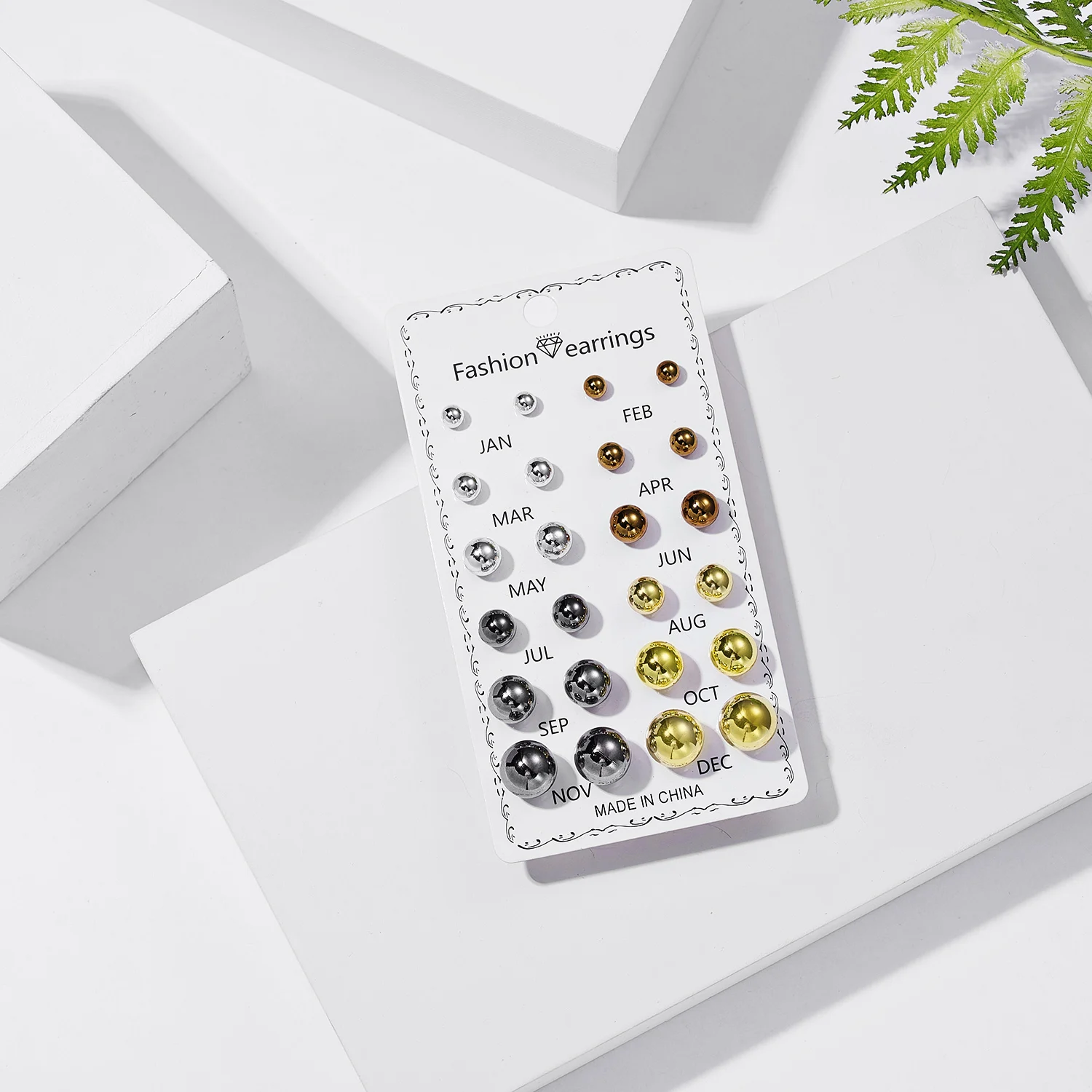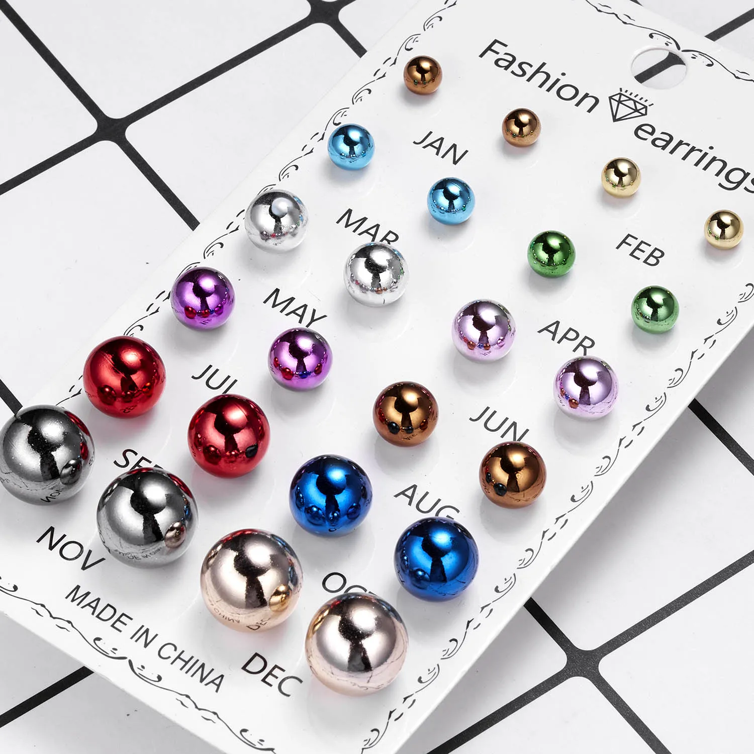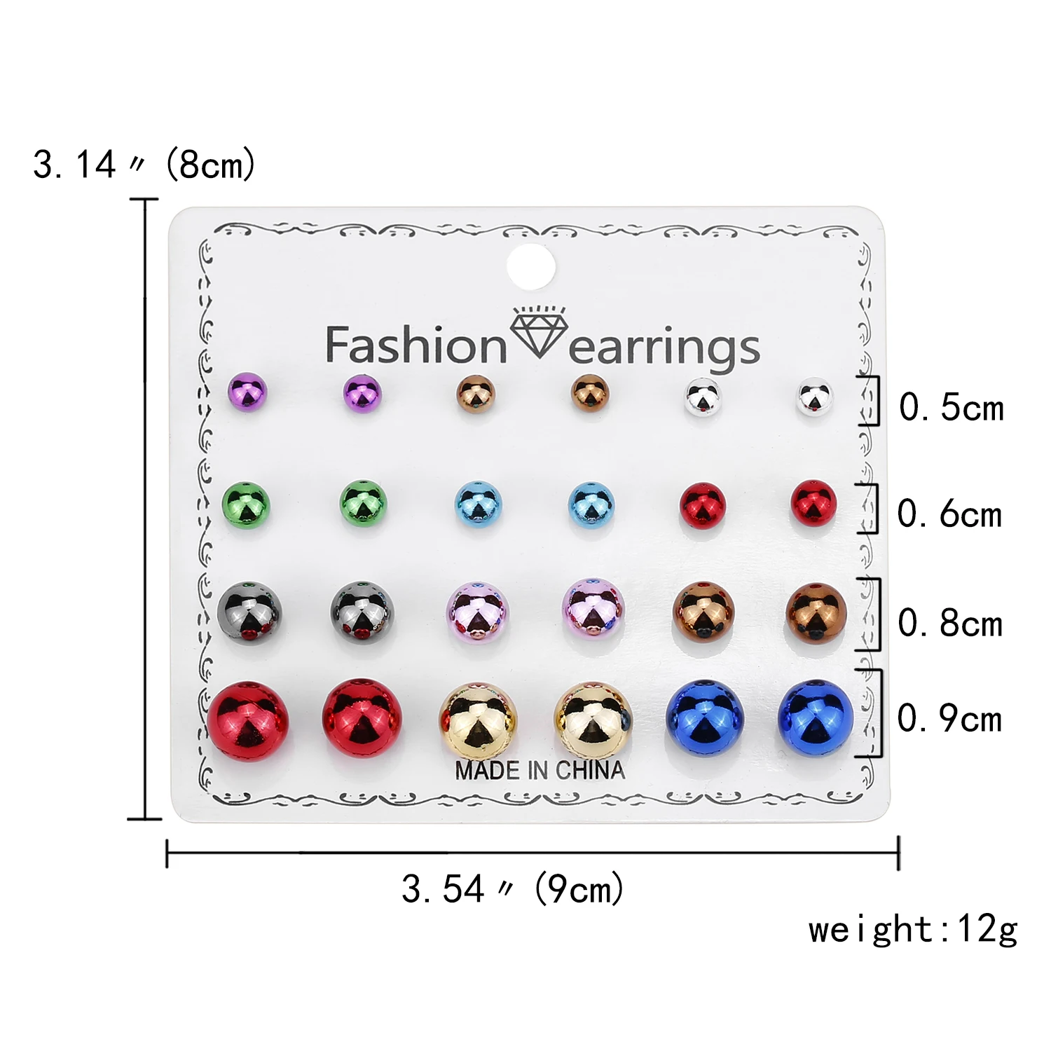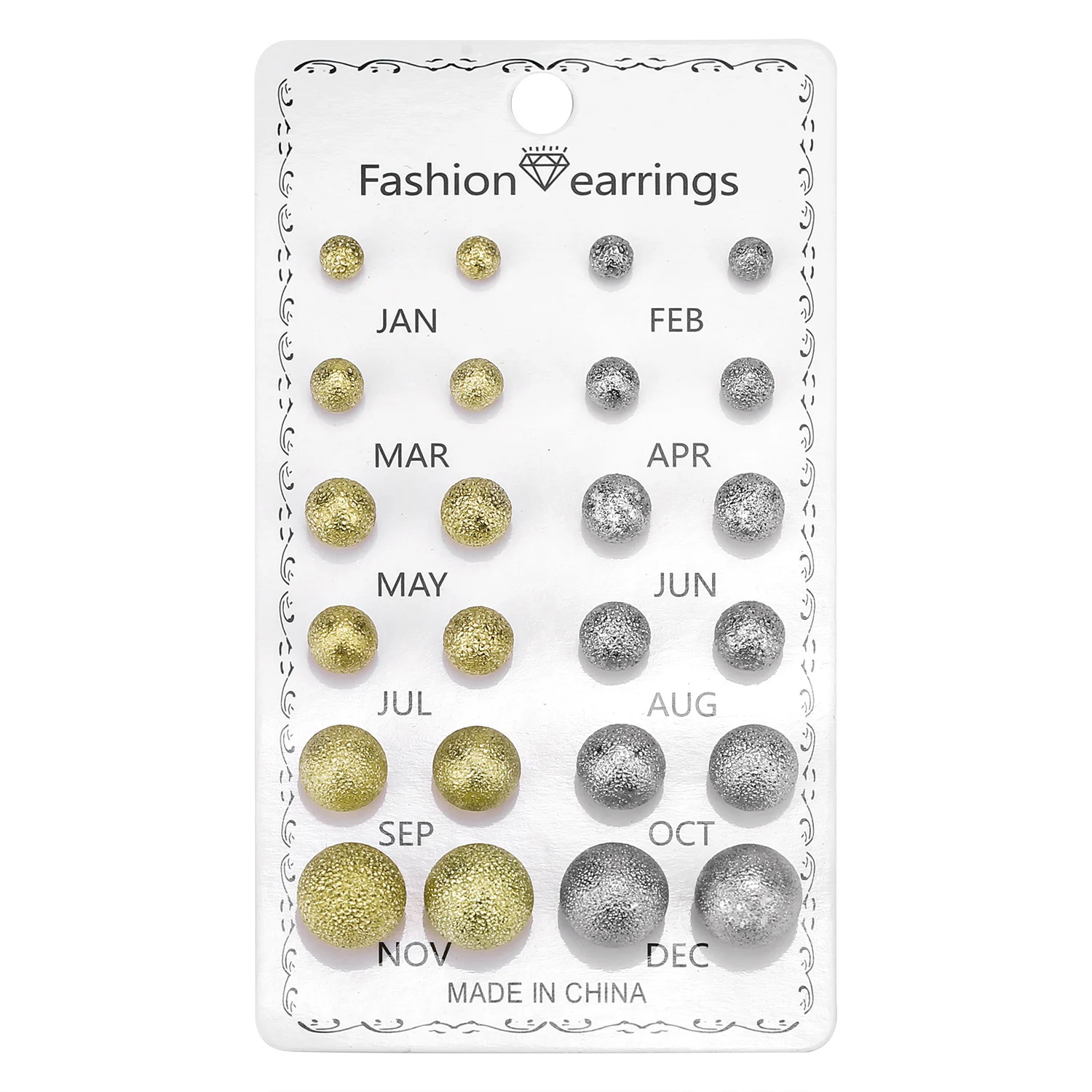 Набор из круглых серег-гвоздиков для женщин и девочек, 12 парткомпл.