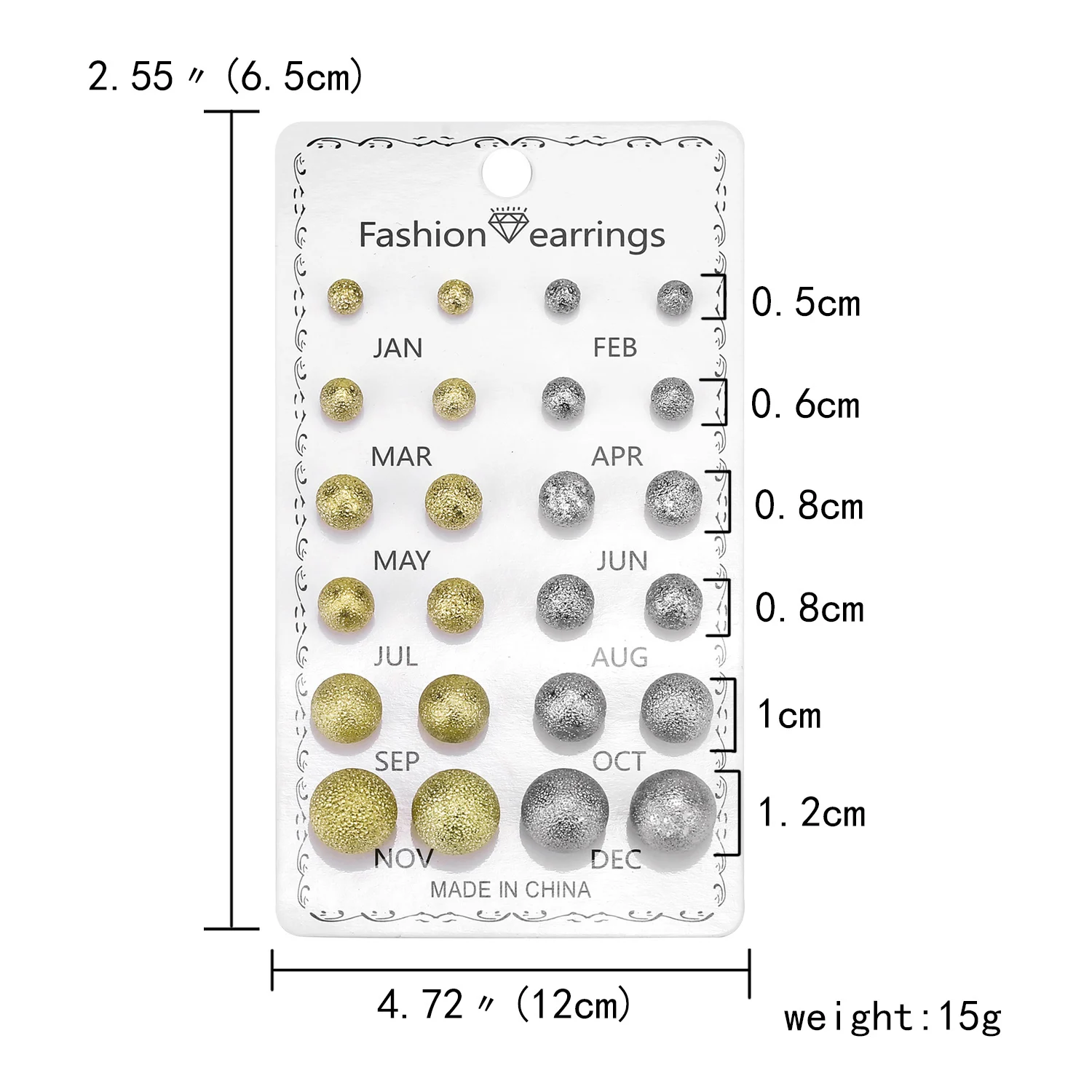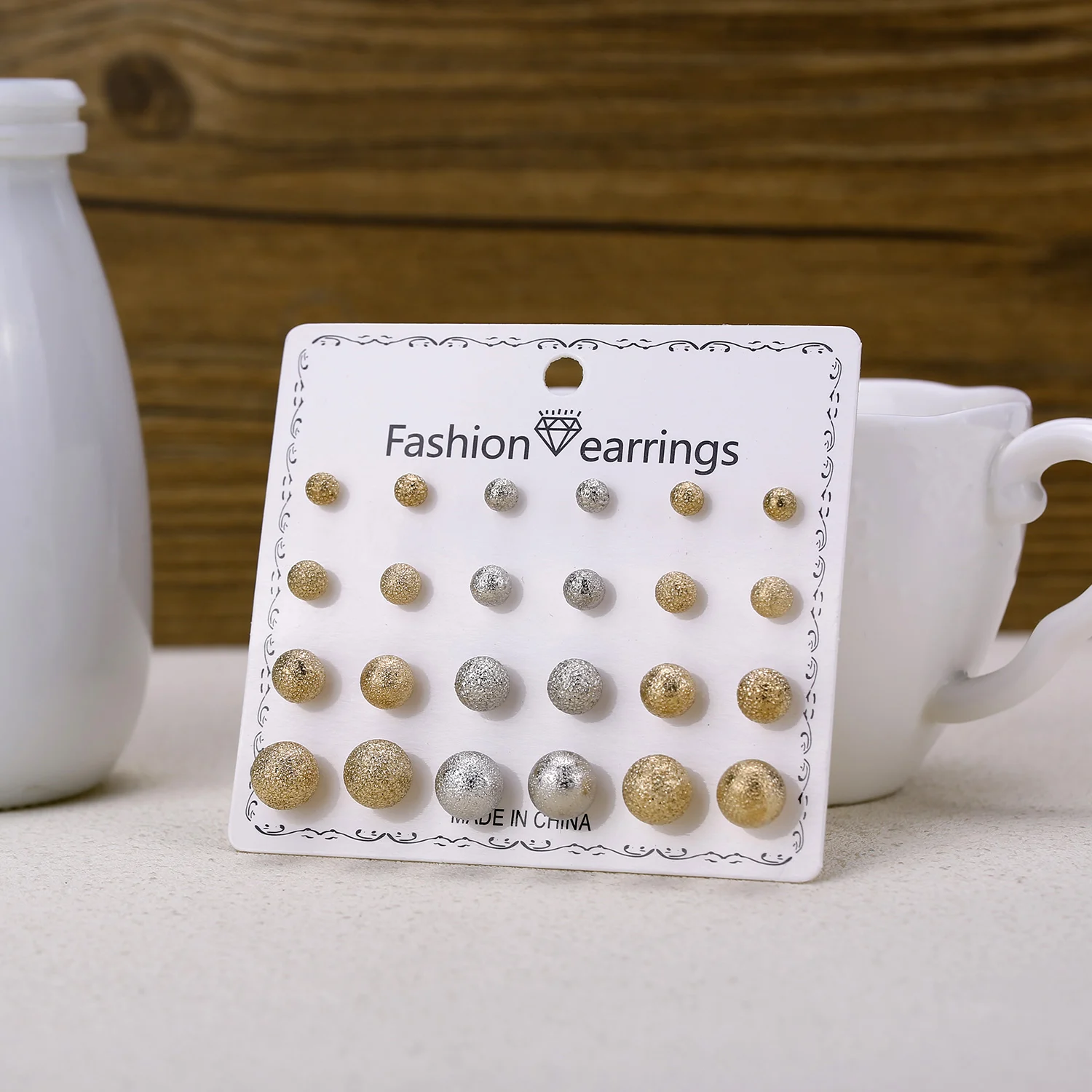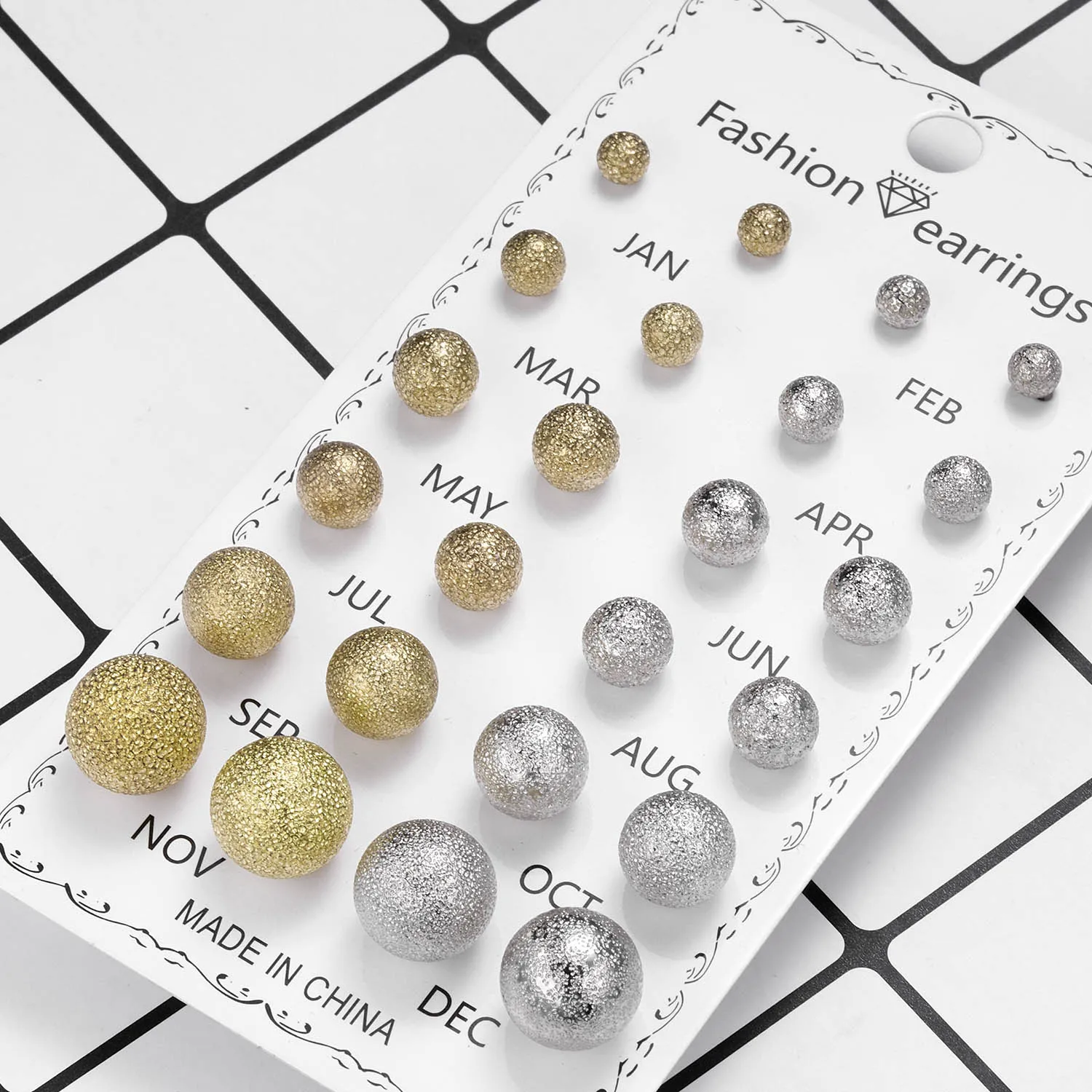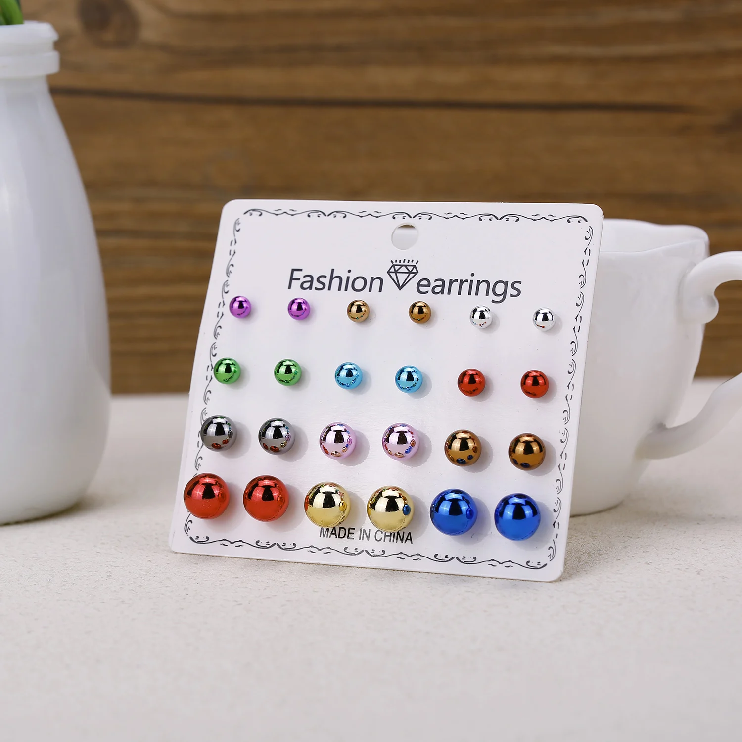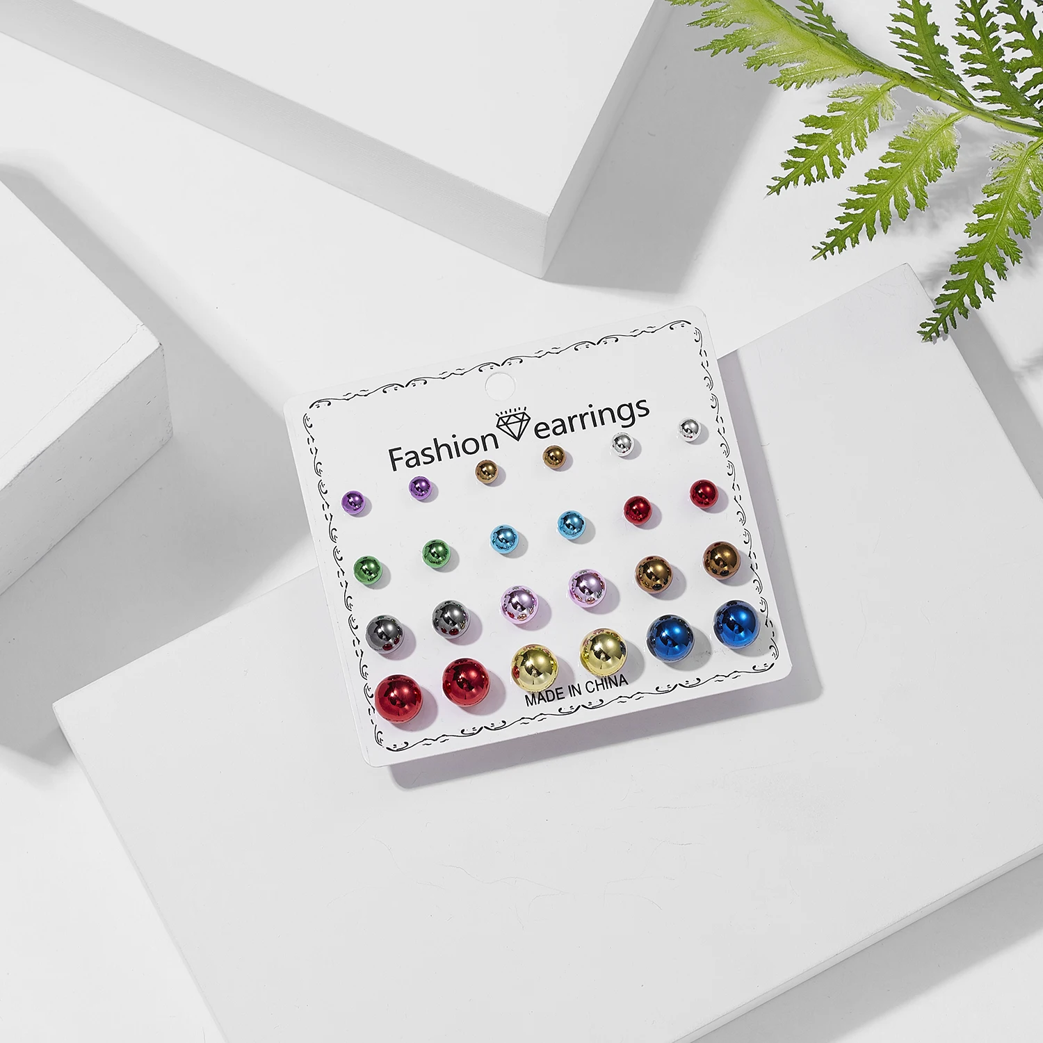 Набор из круглых серег-гвоздиков для женщин и девочек, 12 парткомпл.