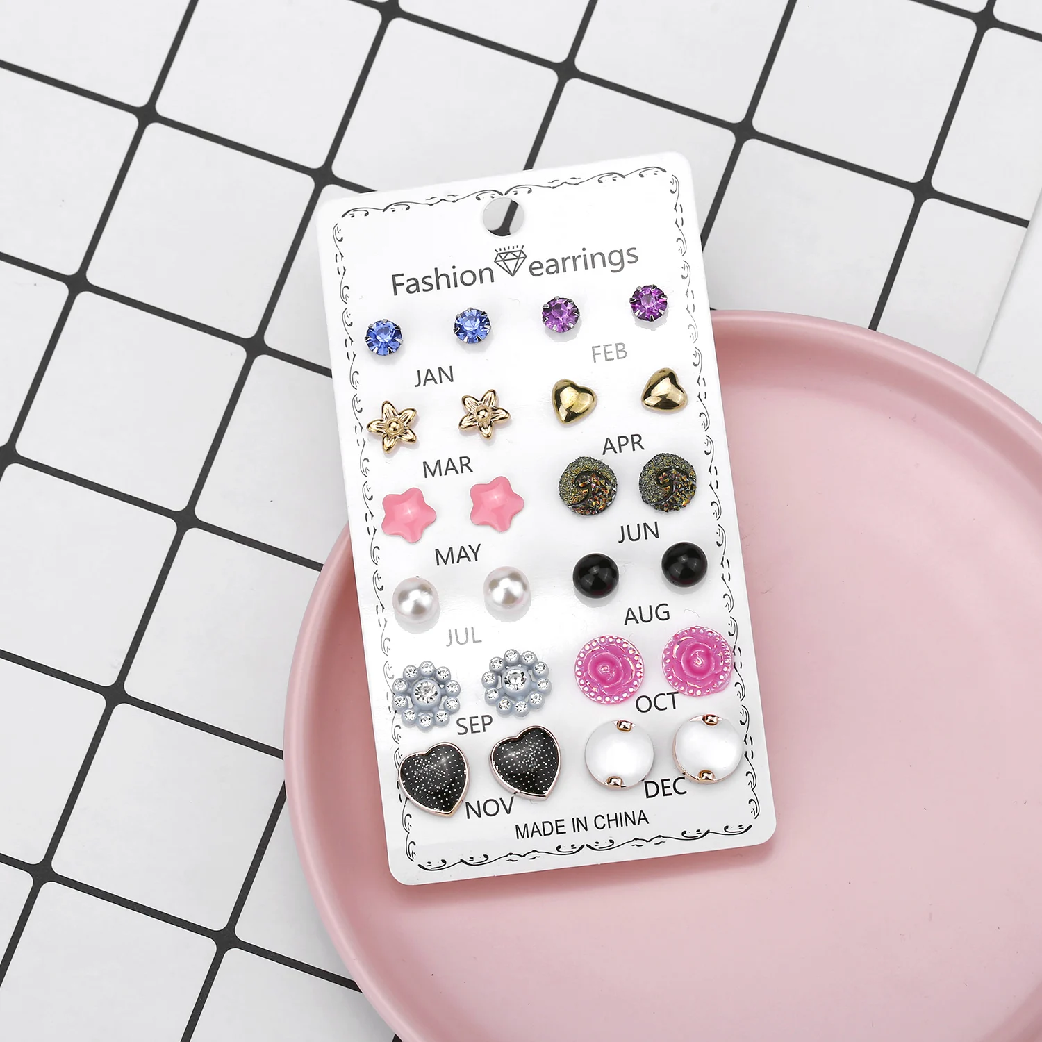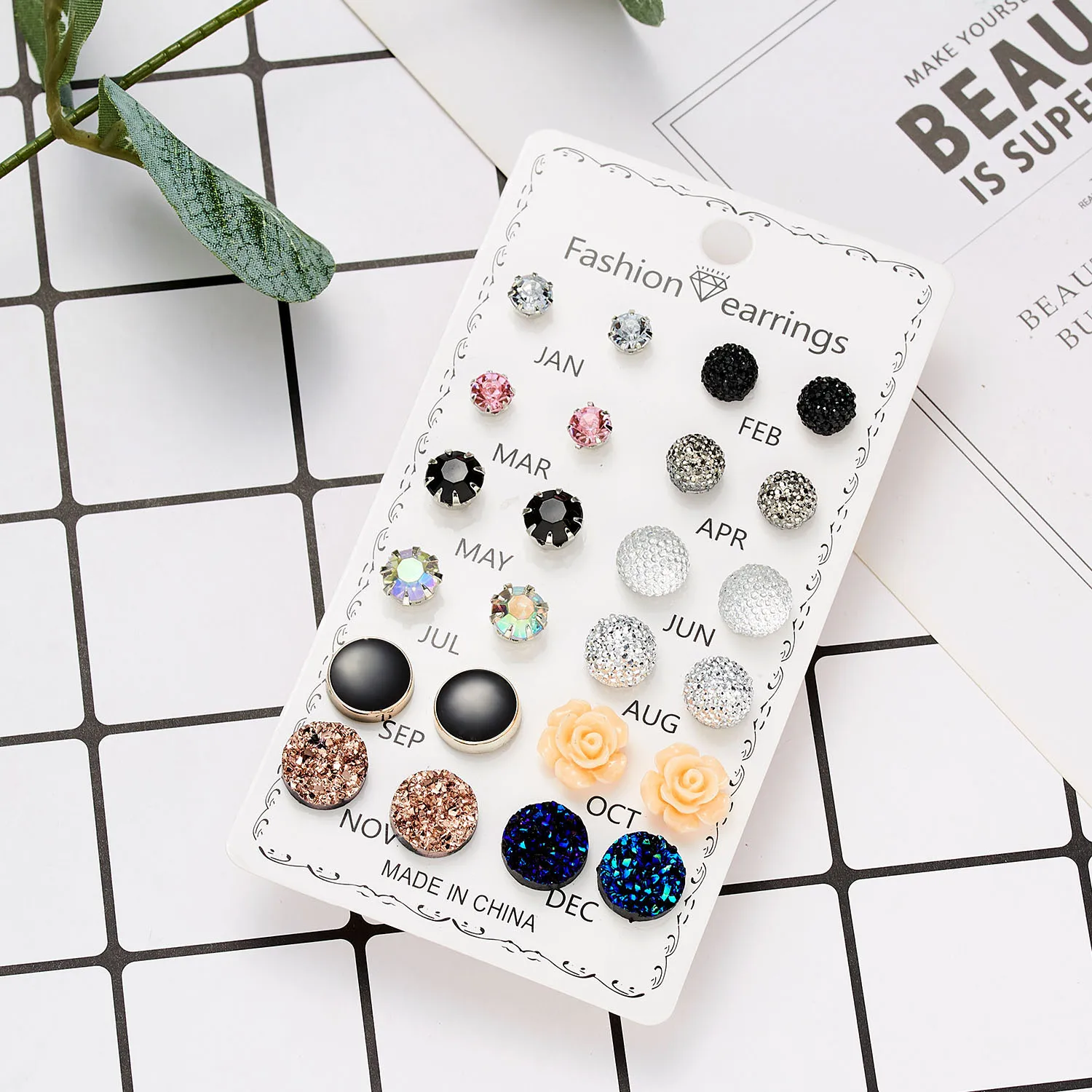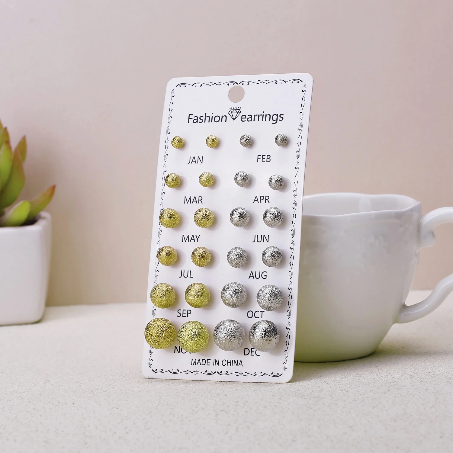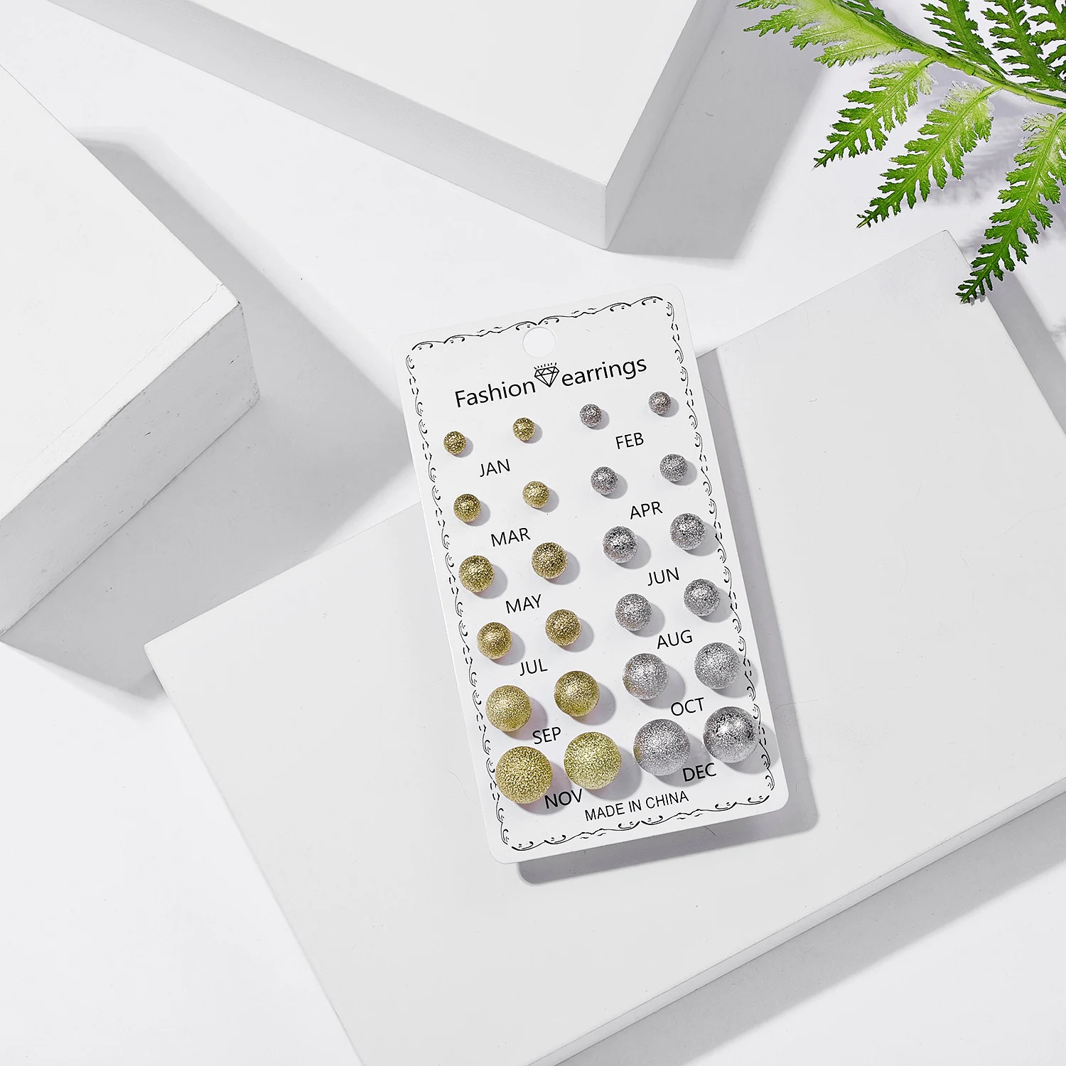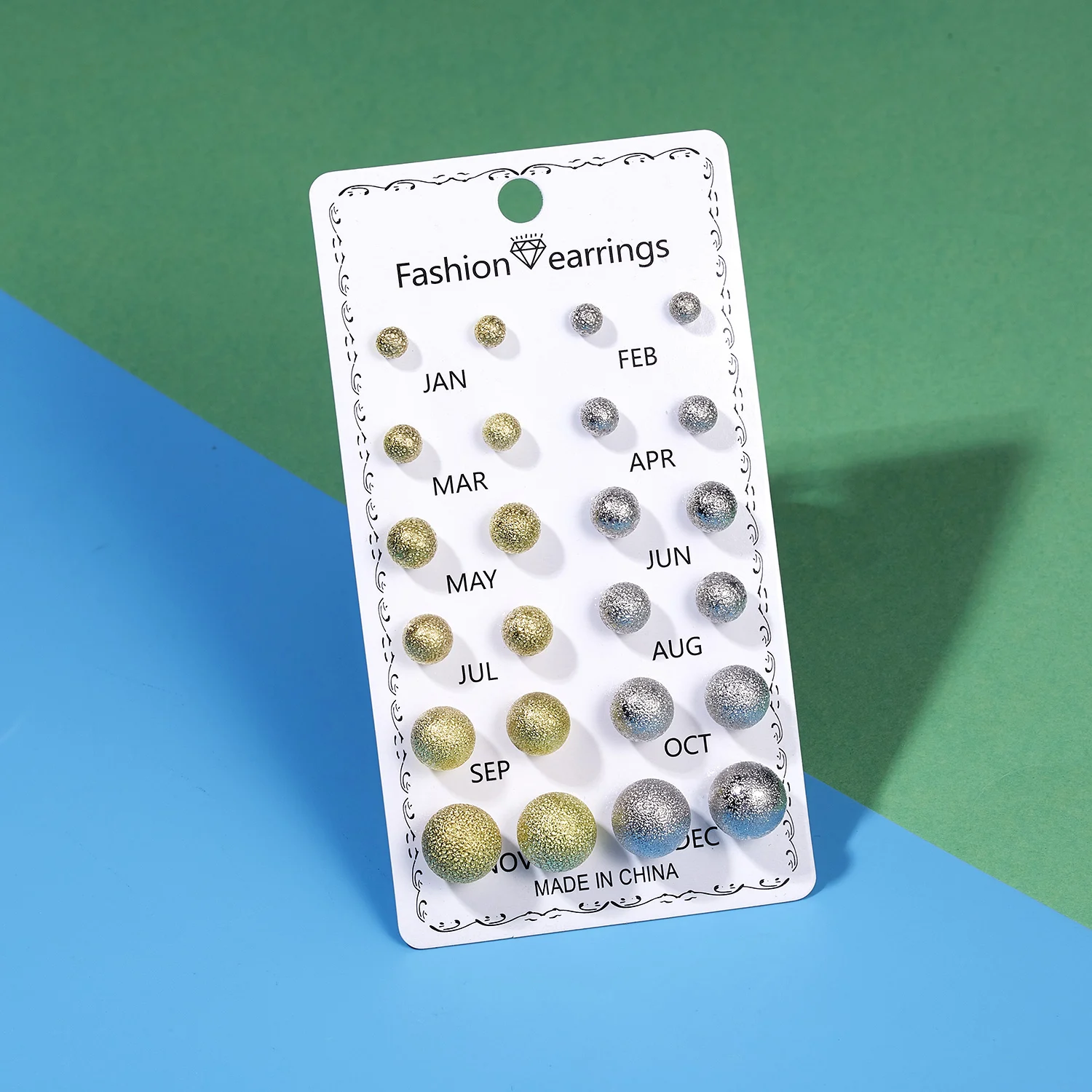 Набор из круглых серег-гвоздиков для женщин и девочек, 12 парткомпл.