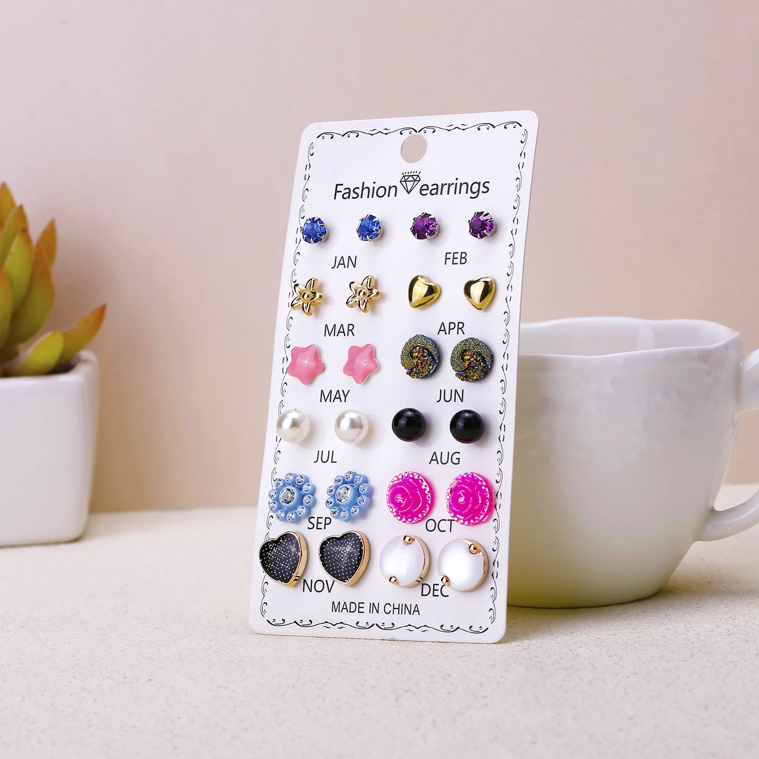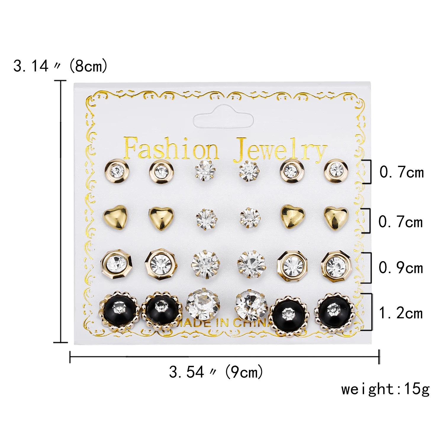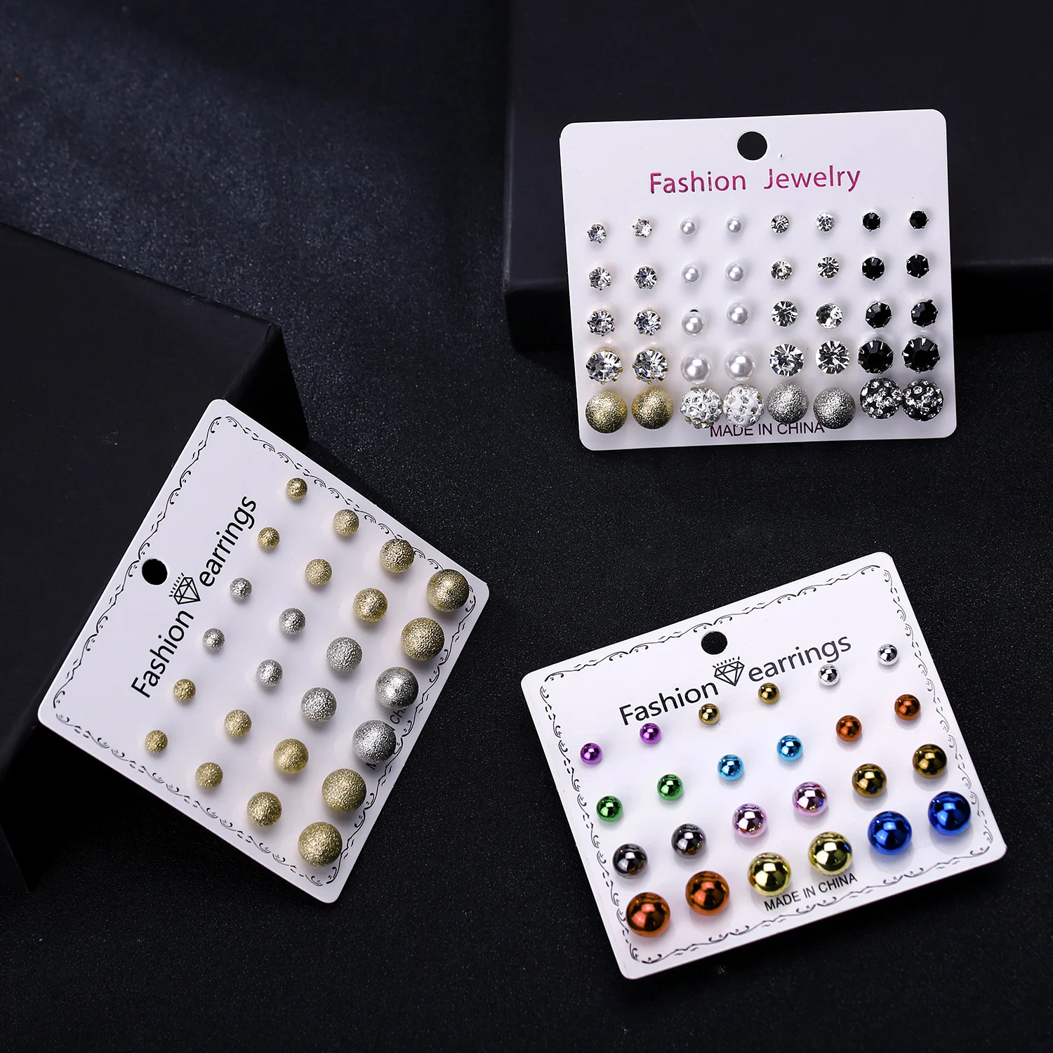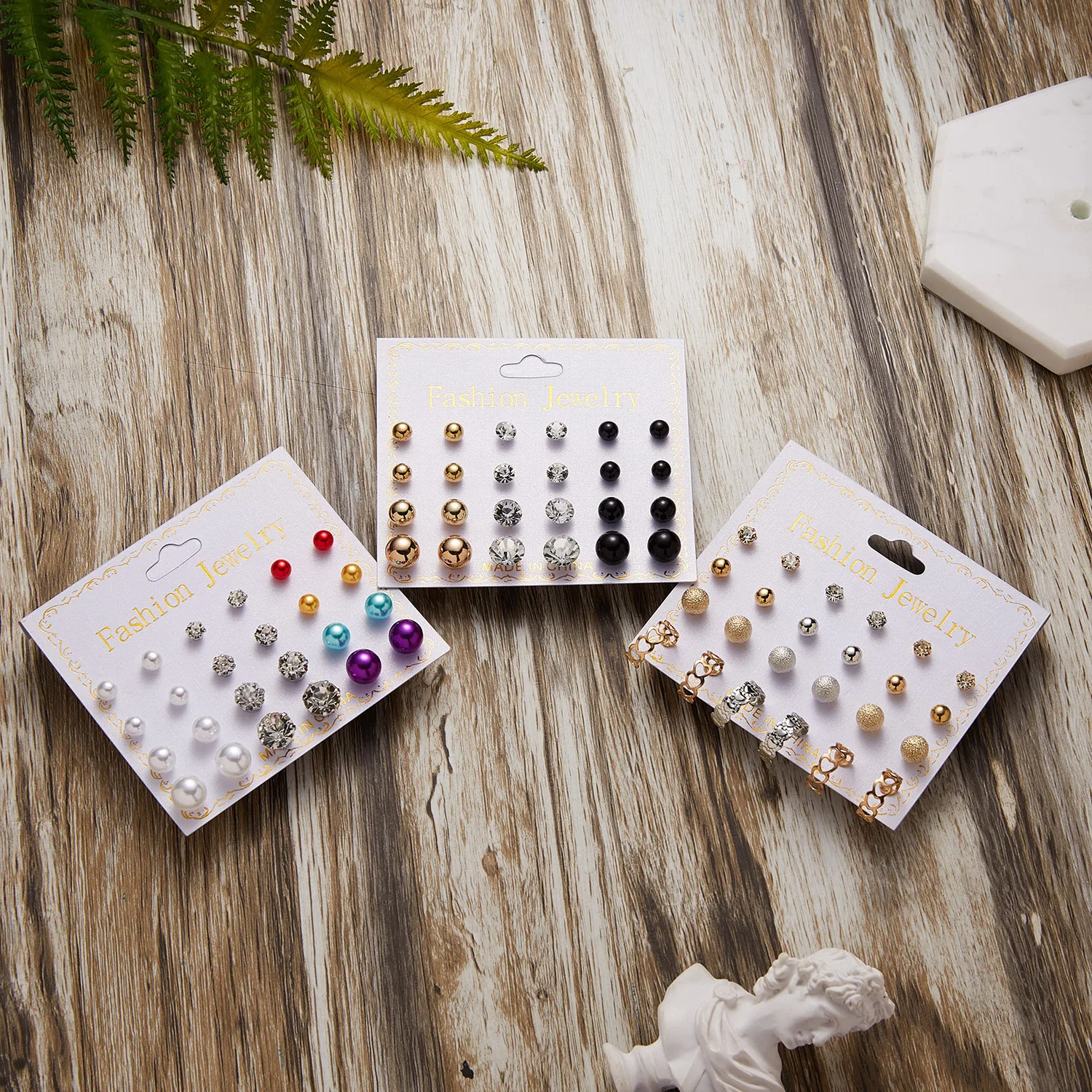 Набор из круглых серег-гвоздиков для женщин и девочек, 12 парткомпл.
