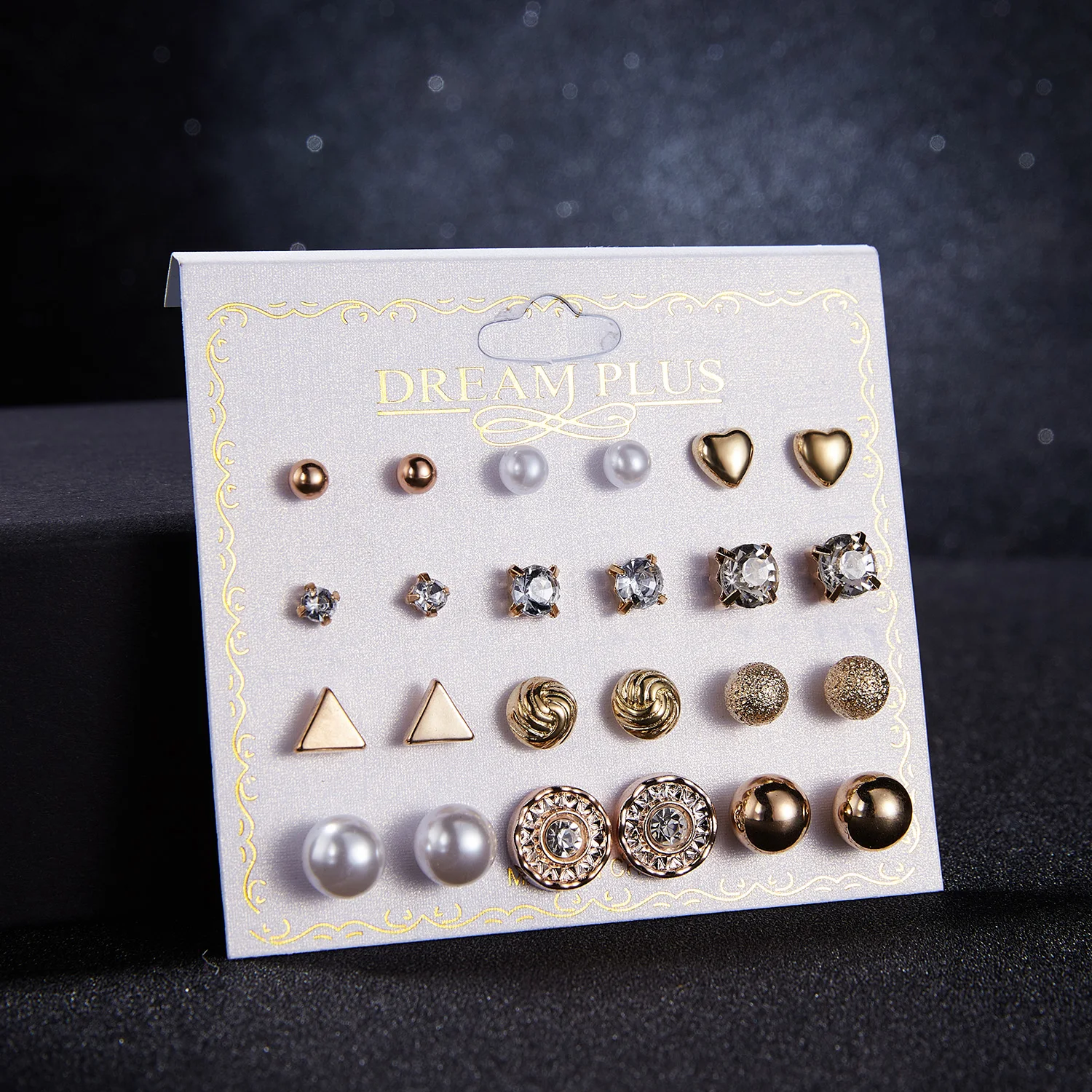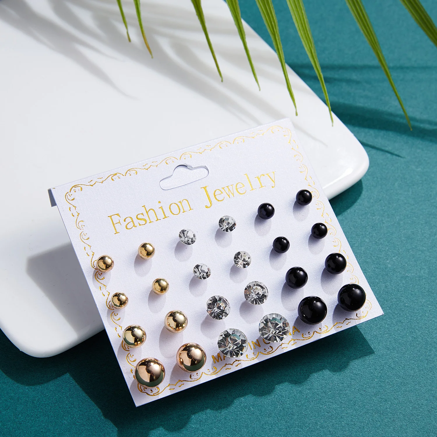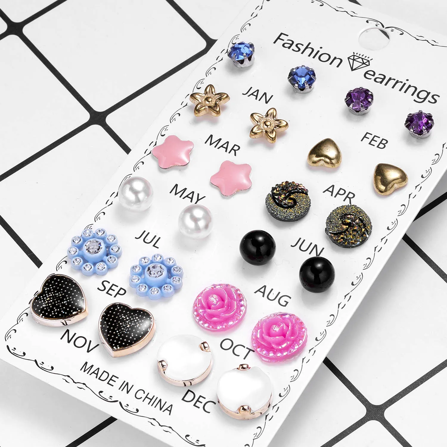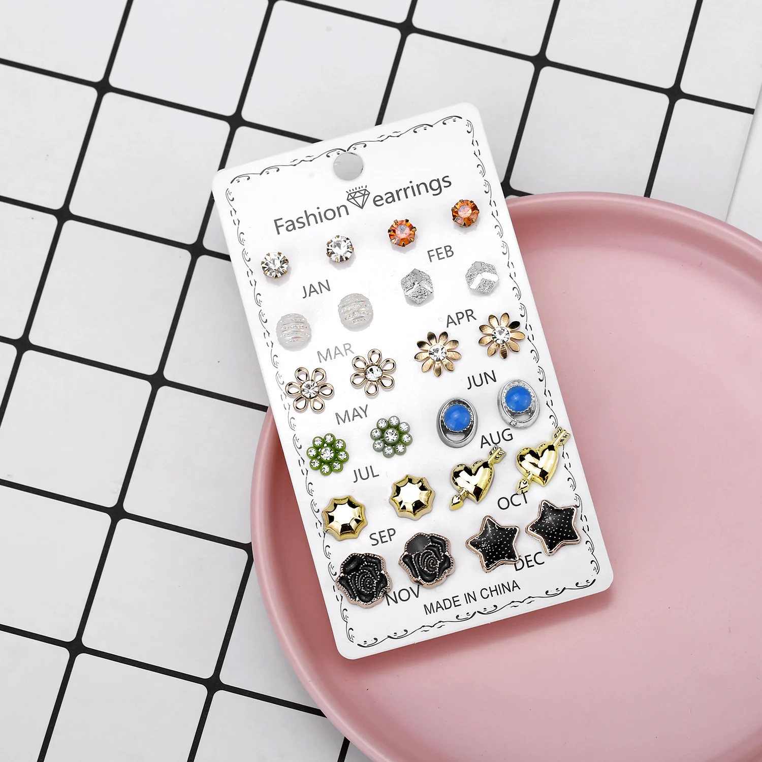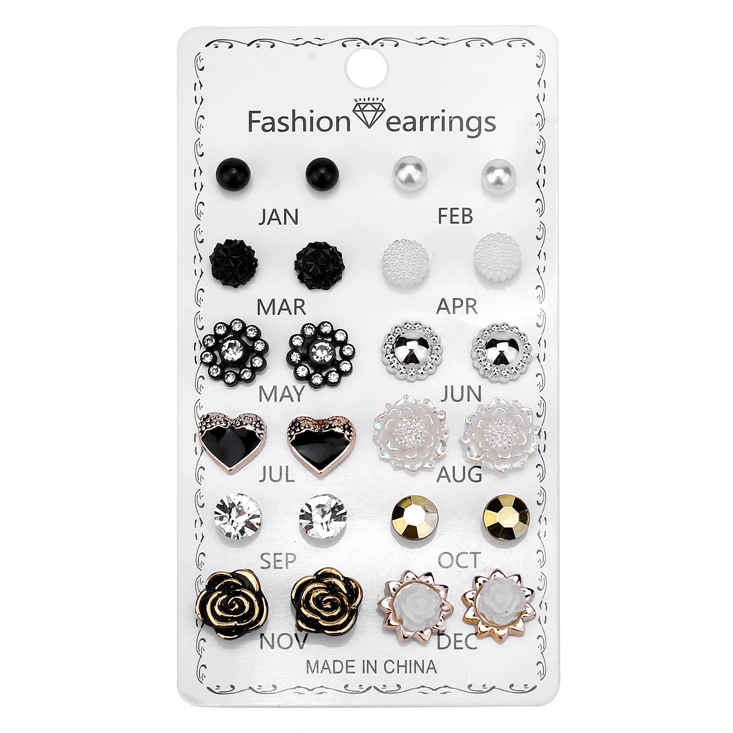 Набор из круглых серег-гвоздиков для женщин и девочек, 12 парткомпл.
