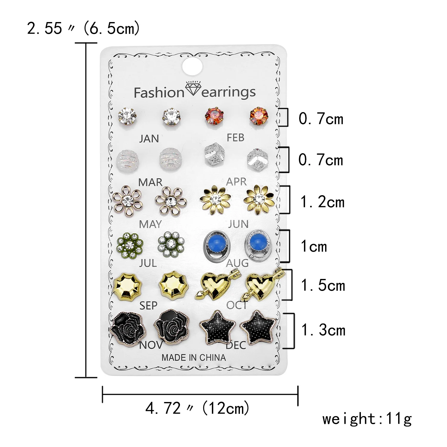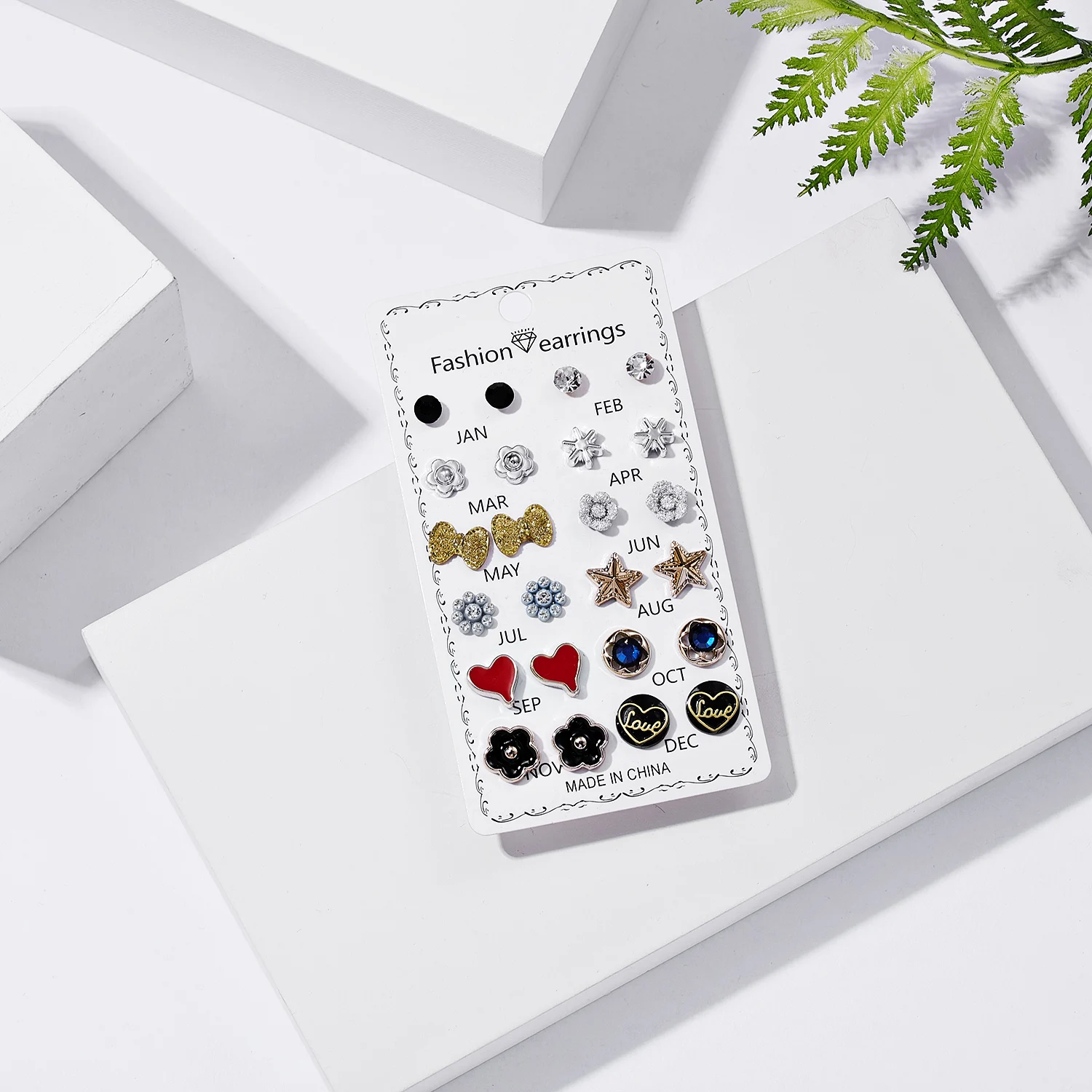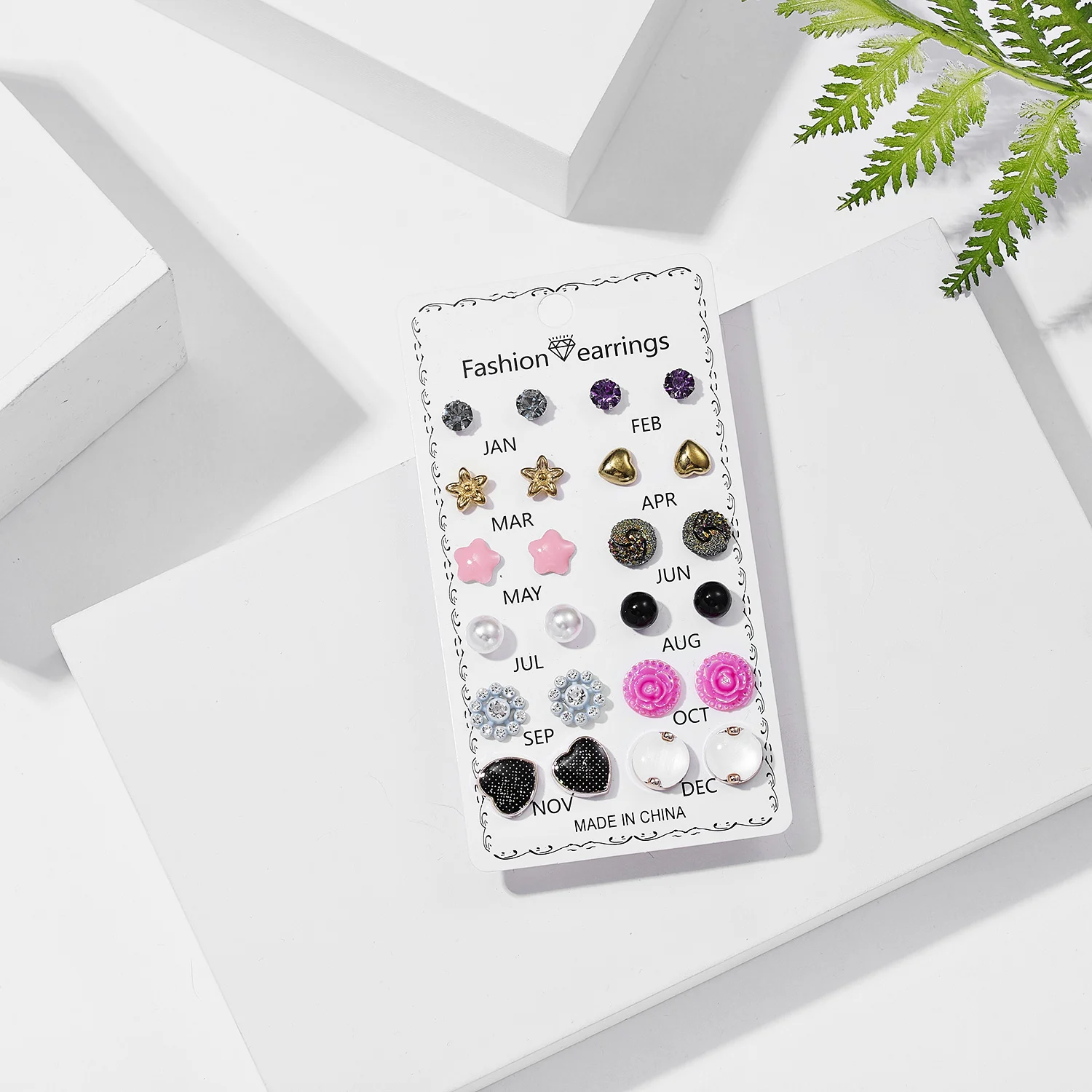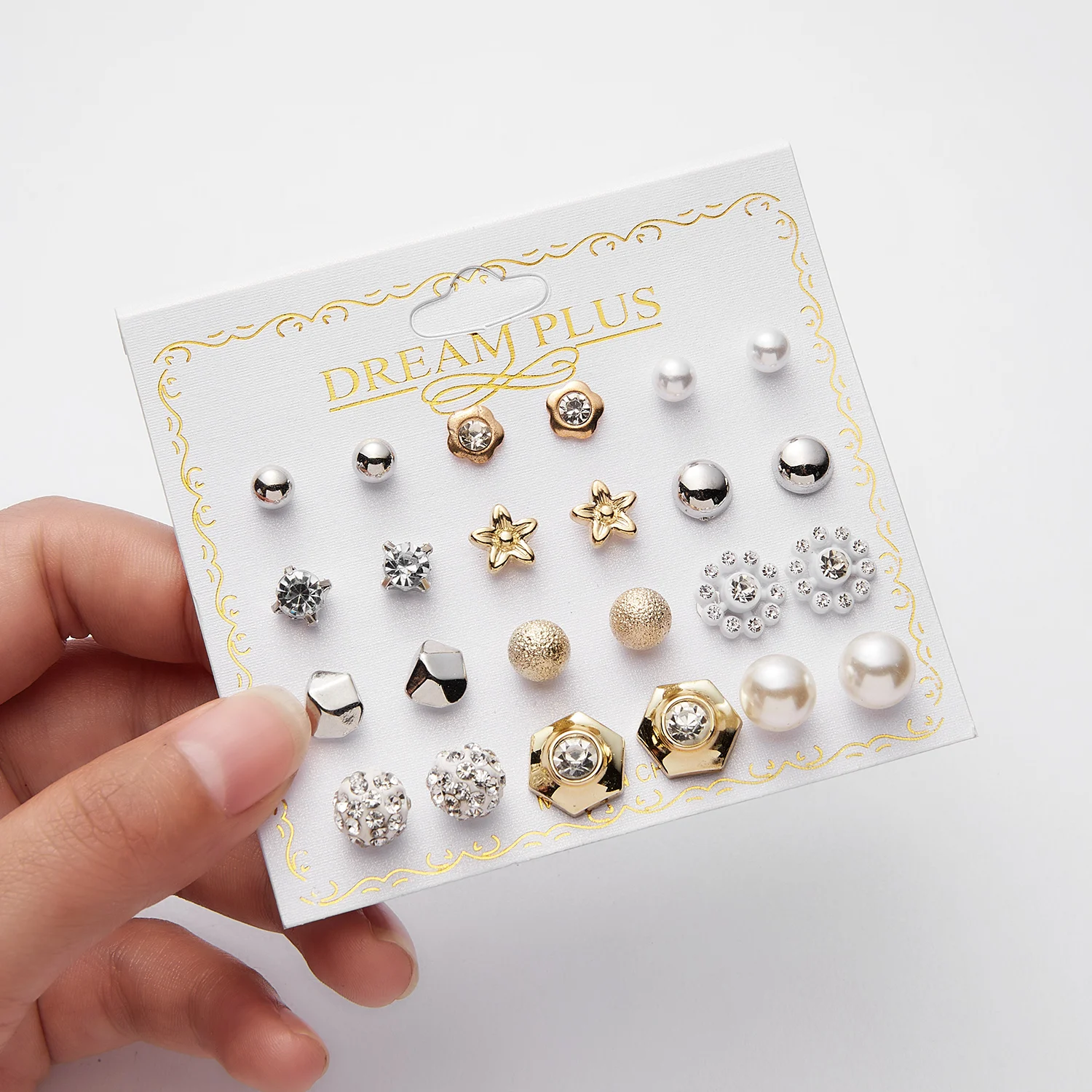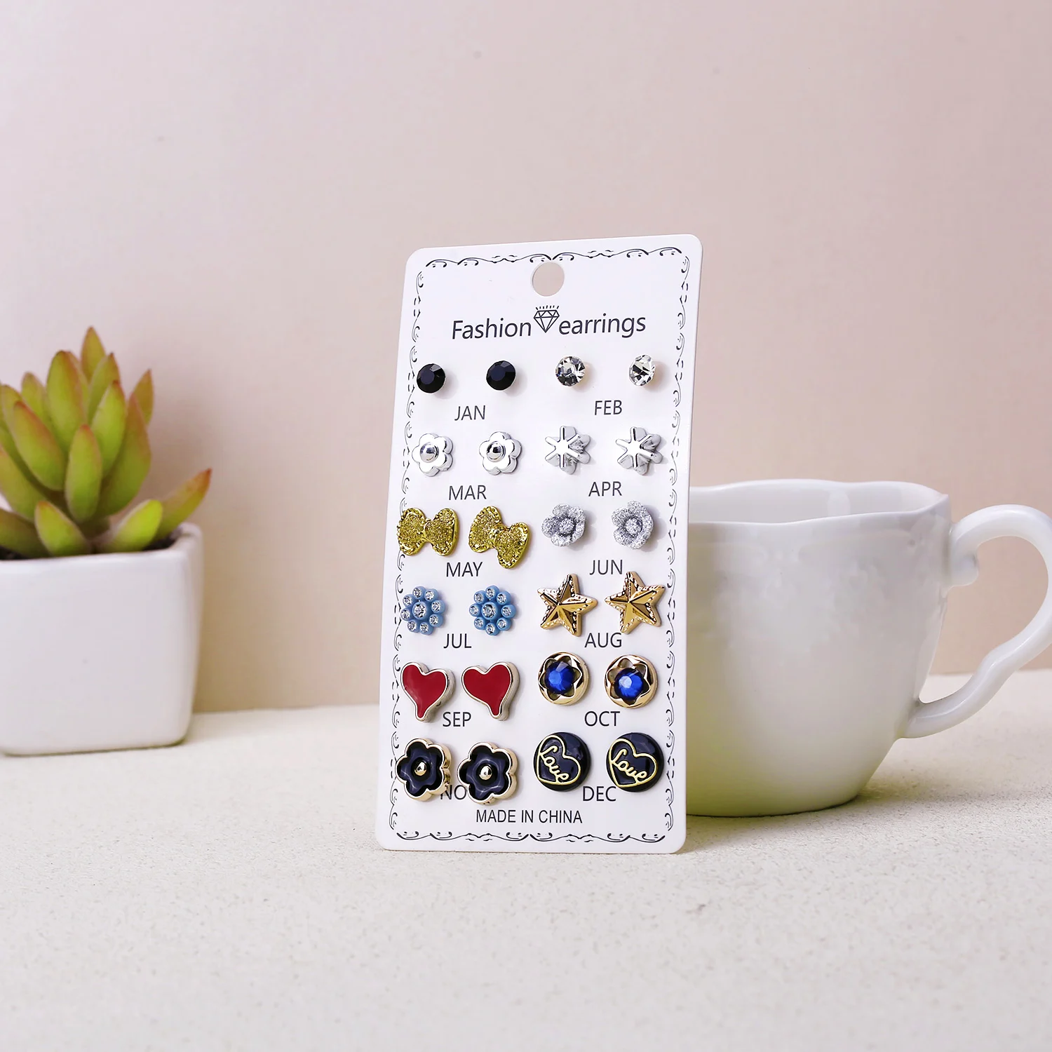 Набор из круглых серег-гвоздиков для женщин и девочек, 12 парткомпл.