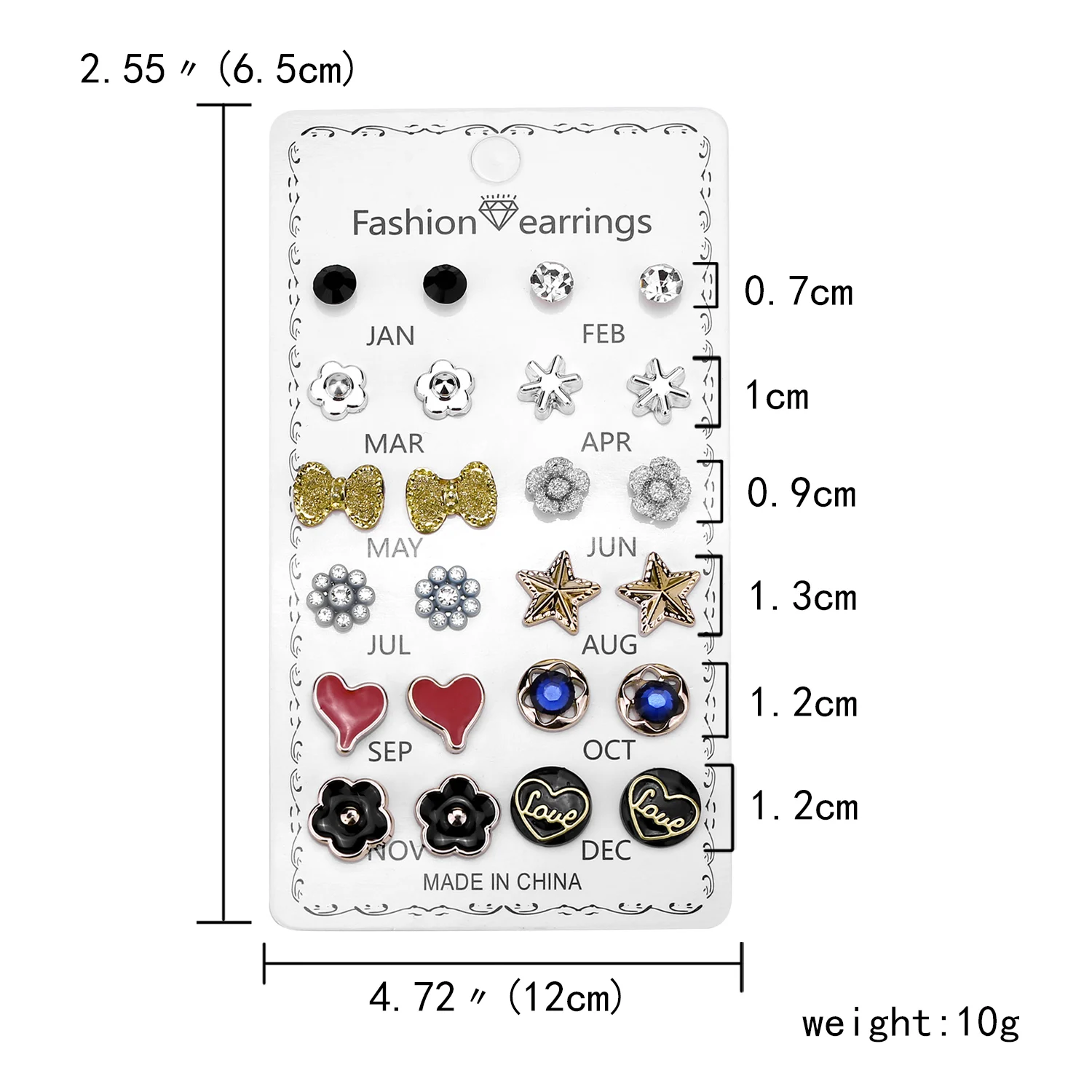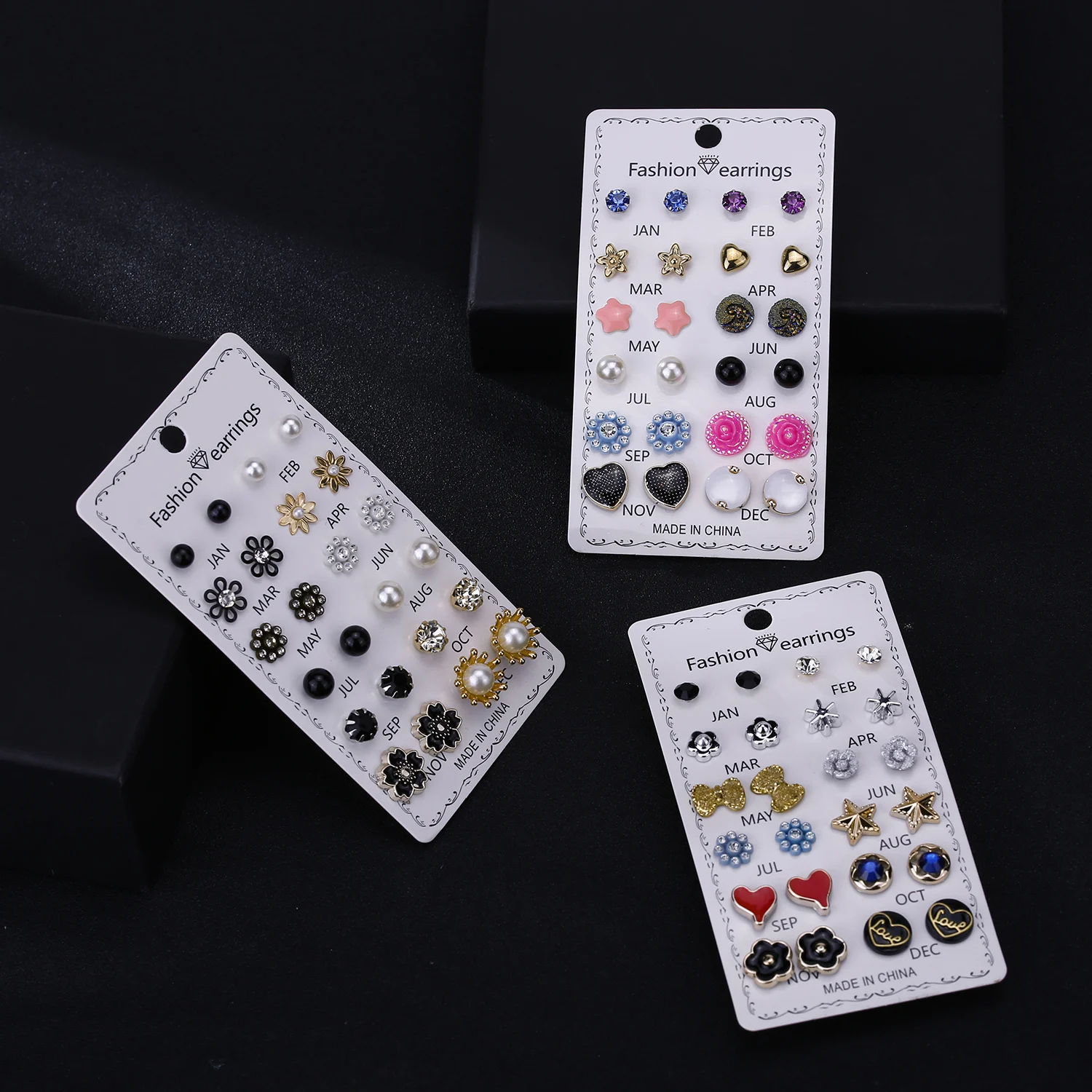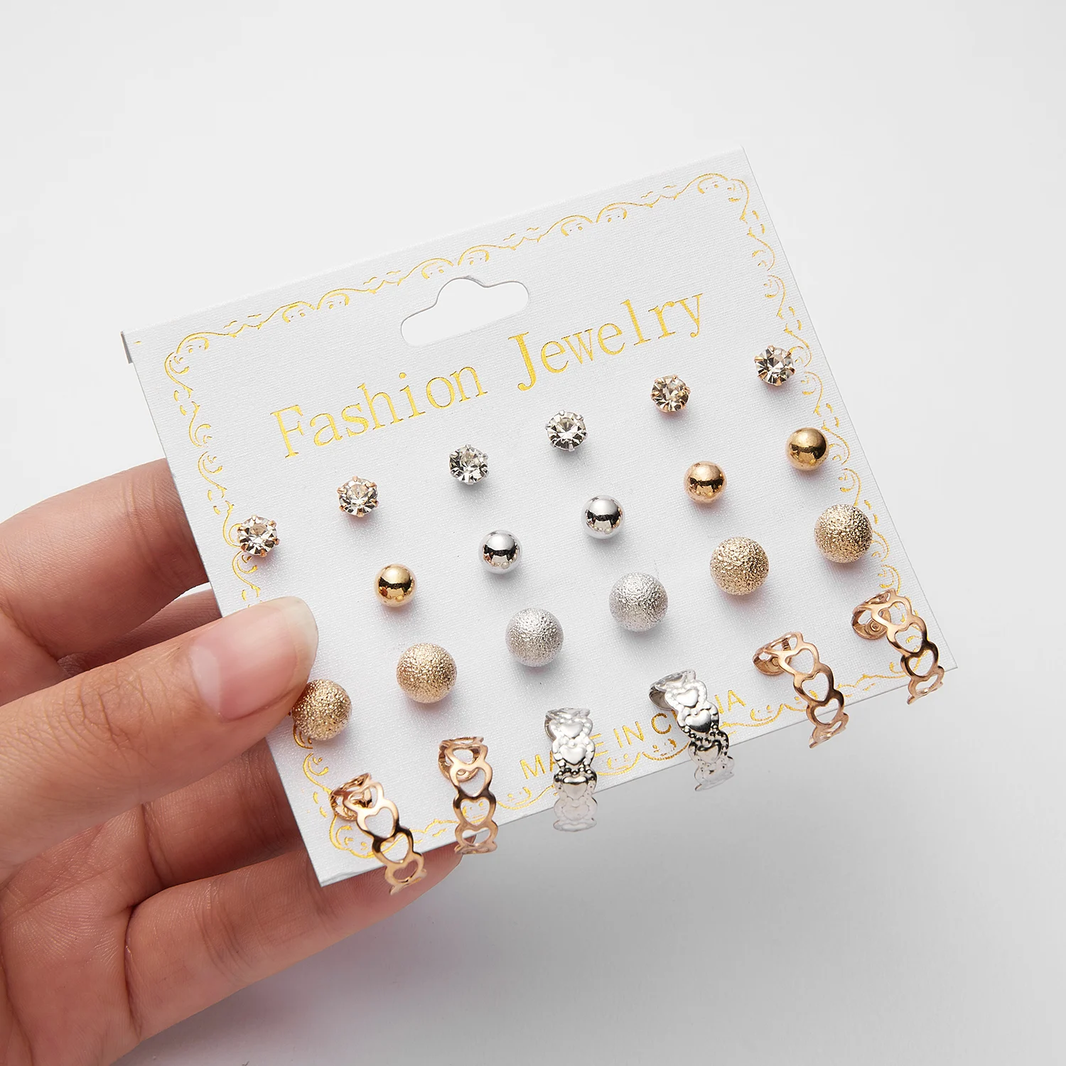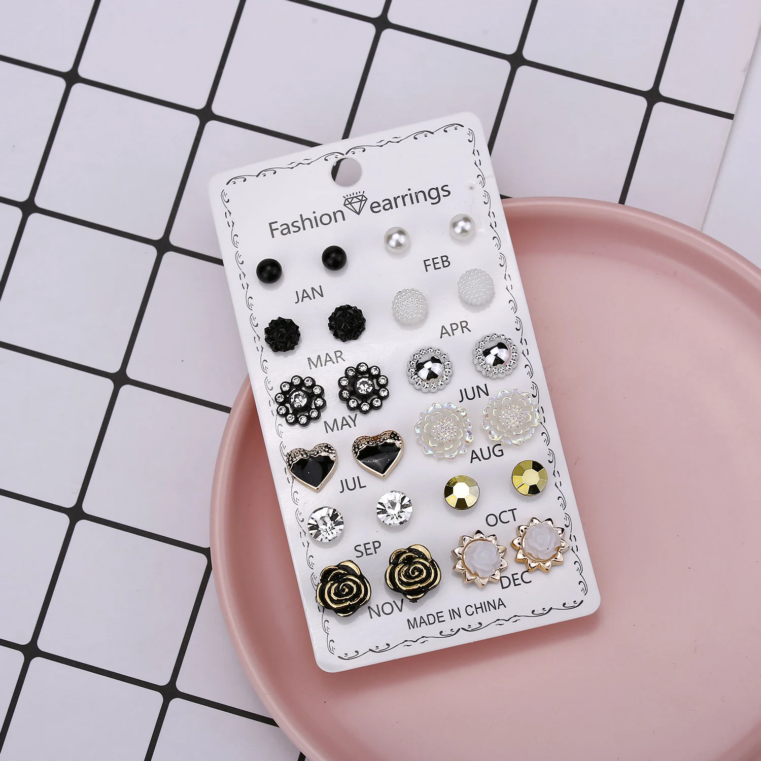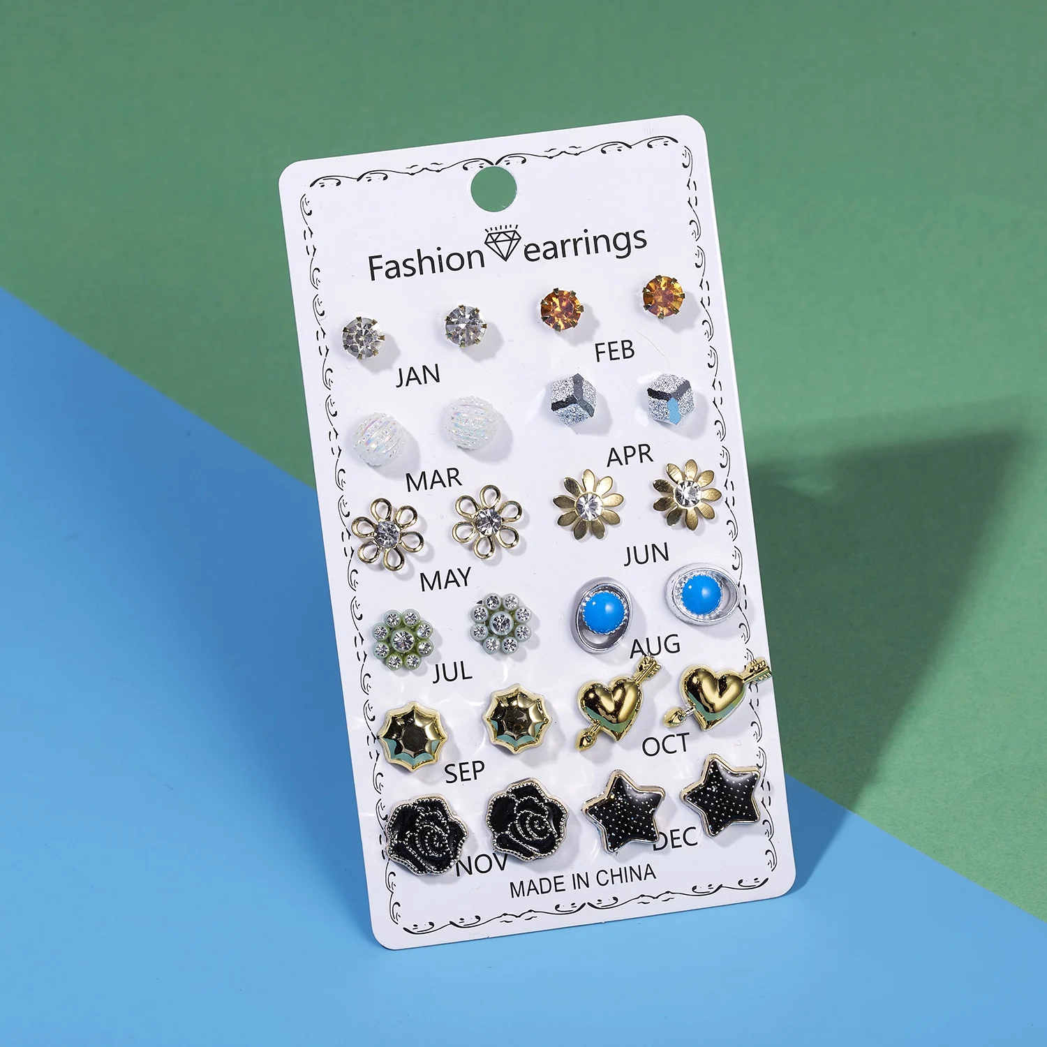 Набор из круглых серег-гвоздиков для женщин и девочек, 12 парткомпл.