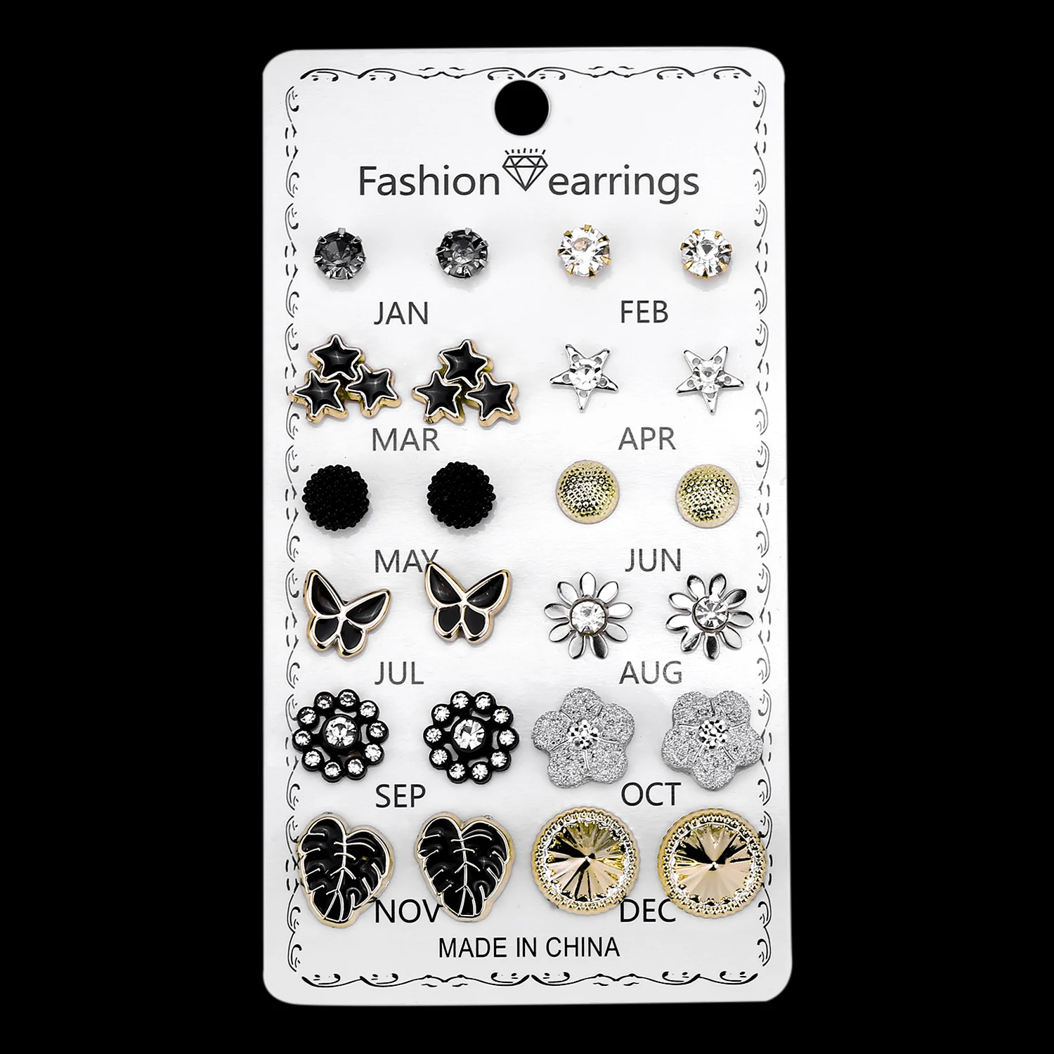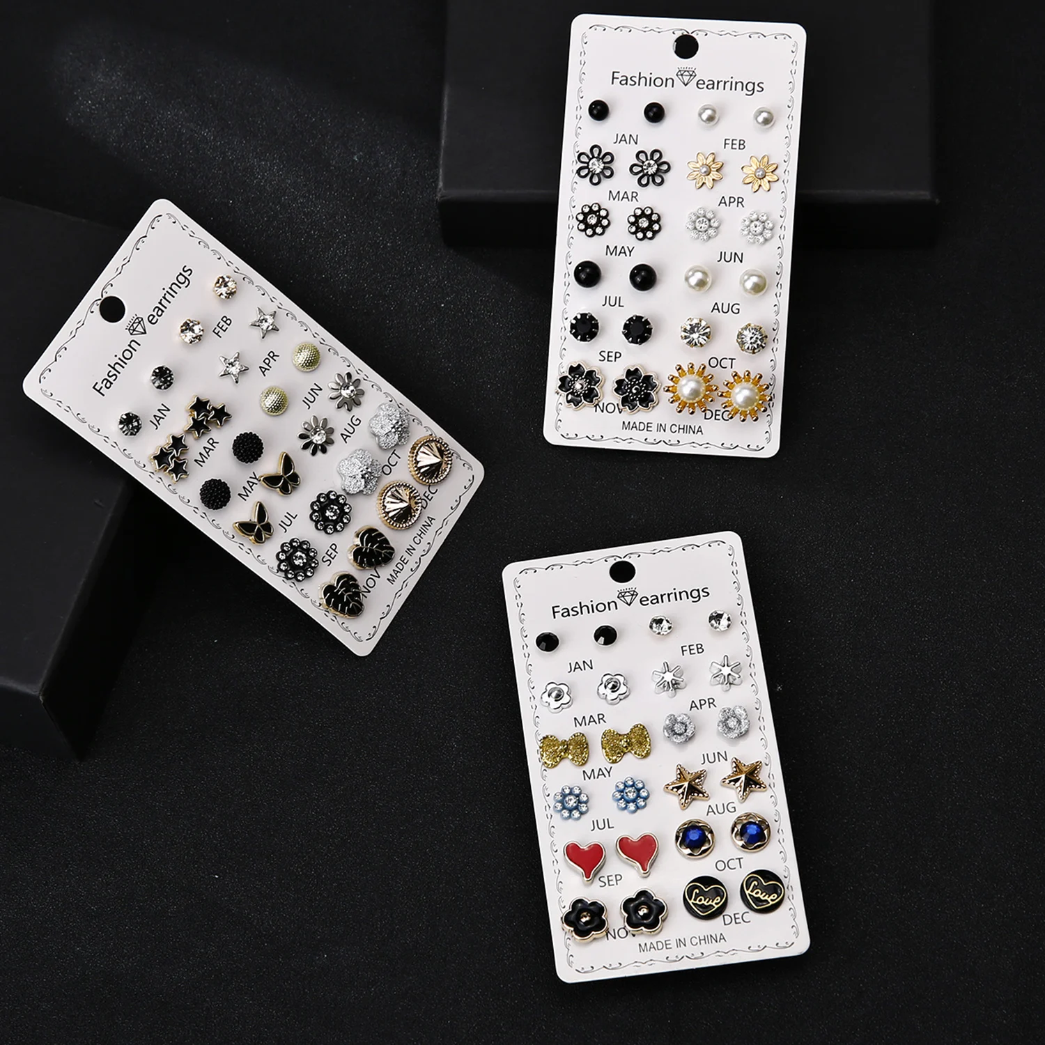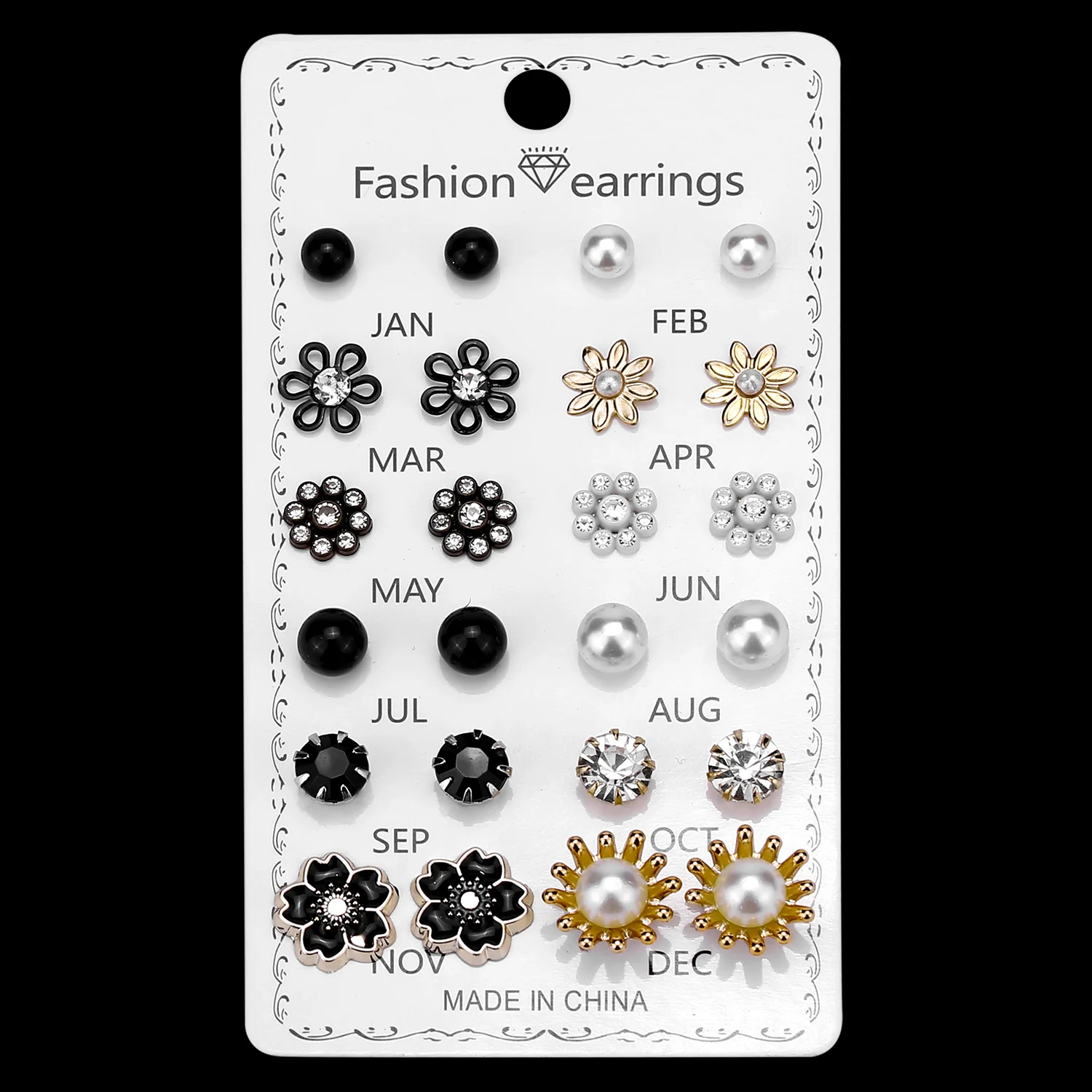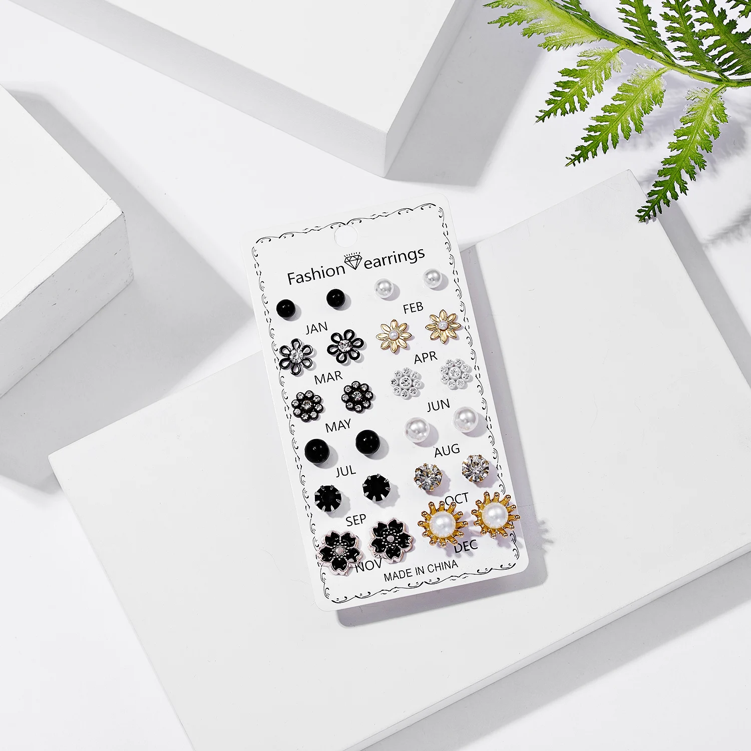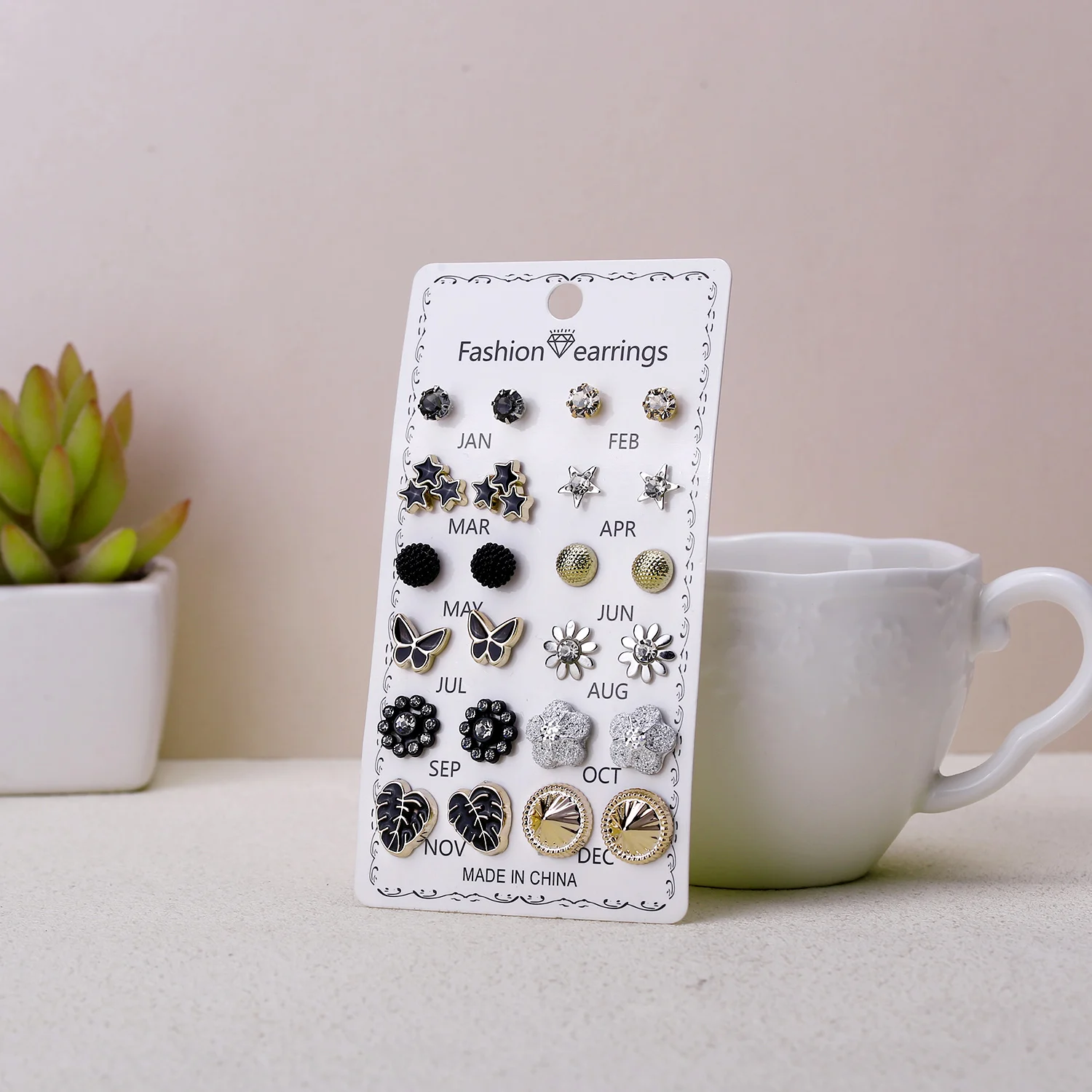 Набор из круглых серег-гвоздиков для женщин и девочек, 12 парткомпл.
