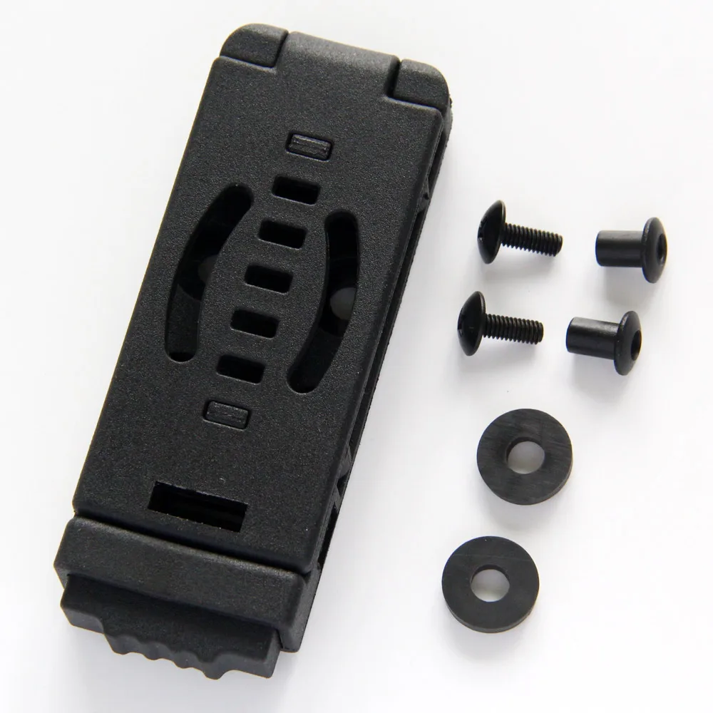 пришло быстро, отправка быстрая. все рабочее, описанию соответствует, пластик мягкий и ломкий. штифты стальные, но тонкая проволока. для подвеса небольшого ножа вполне годно, но не более того