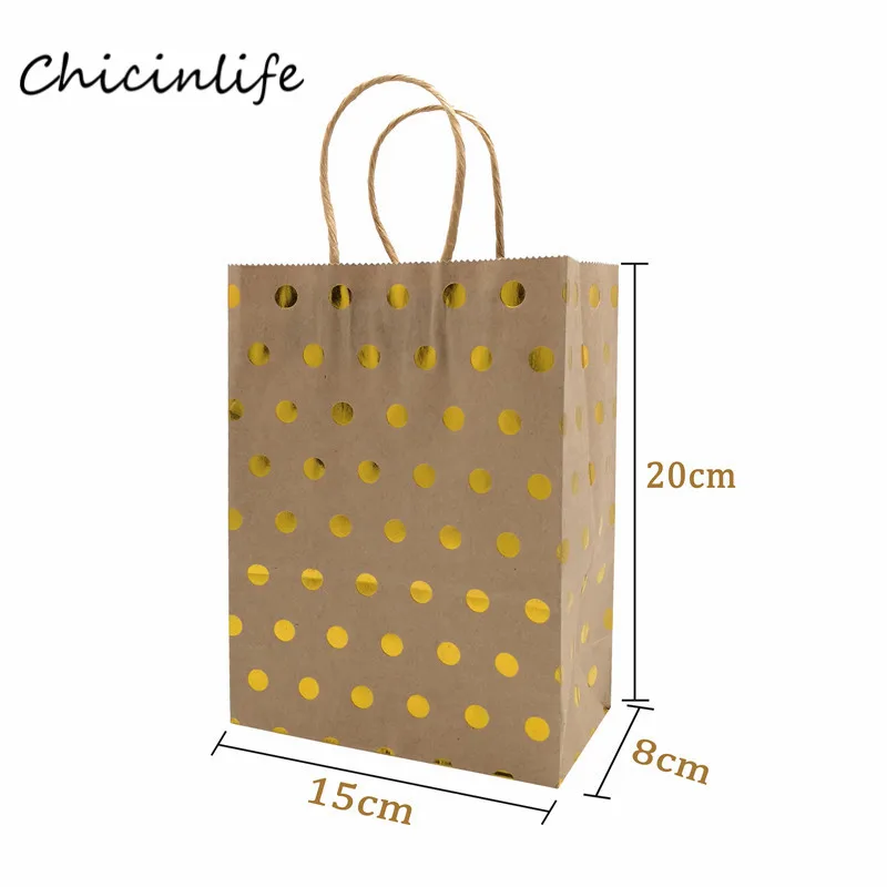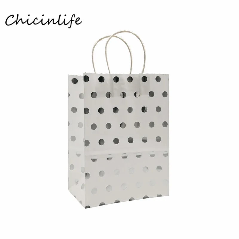 Chicinlife 5 шт. золотые серебряные, в точку ручки подарочные пакеты Дети счастливые воздушный шар для дня рождения свадьбы украшения вечеринки детский душ бумажные пакеты