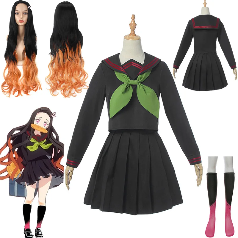 Аниме Демон Истребительница Косплэй форма камадо Nezuko Косплэй костюм Kimetsu без Yaiba Косплэй платье Для женщин Школьная одежда костюм парик