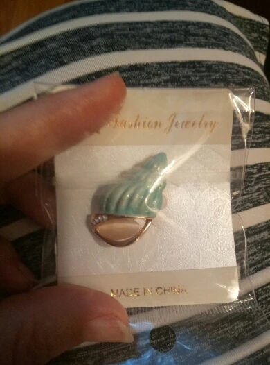 Роскошная брошь *Ракушка*. Эмаль нанесена аккуратно, полупрозрачная голубая. По входу в устье раковины дорожка из белых стразов. Сам моллюск вставка из камня типа кошачий глаз цвета топлёного молока. Размер примерно 3.5х2.5 см. Заказывала такую более 3-х лет назад на другом сайте и уже знала что получу! Красотища! Закажу еще несколько шт. на маленькие подарочки. Камень переливается, стразики искрятся, эмаль оч. красивая. Шла довольно долго, но это того стоило. Восторг! Спасибо продавцу!!