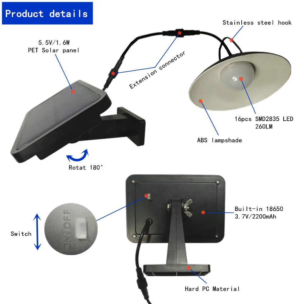 Двойная светодиодная лампа на солнечных батареях для улицы/внутренний аварийный свет с удлинителем 3 м, водонепроницаемая для кемпинга, террасы, палатки, люстры