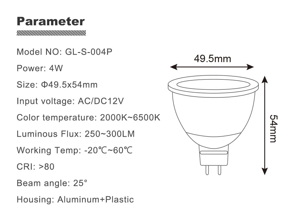 Примечание:Это небольшое напряжение 12 В MR16 необходимо использовать AC/DC 12 В источник постоянного тока напряжения питания, не использовать источник питания галогенной лампы и источник питания постоянного тока.
