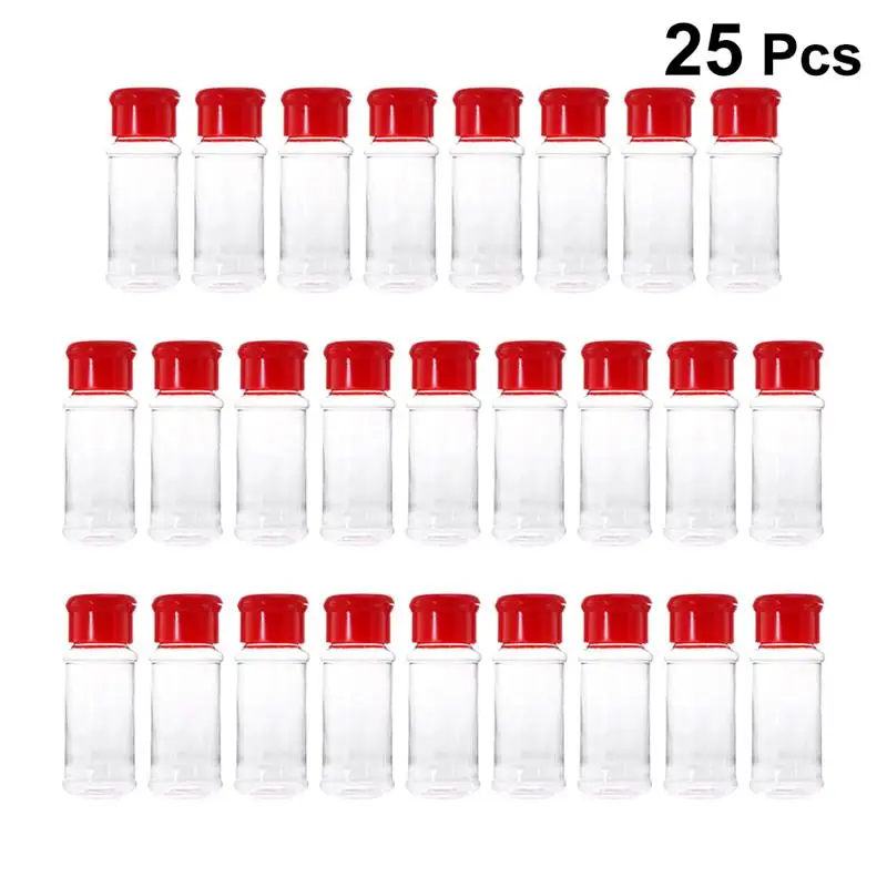 Пластиковая банка для специй 100, 25 шт., Солонка и перечница с дырочками сверху мл, банка для приправ, барбекю, барбекю, приправ, уксуса, бутылка для кухни, ресторана